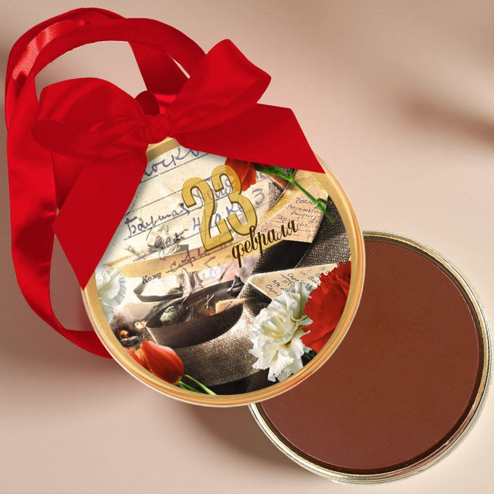Вы хотите удивить друга, знакомого или коллегу подарком на 23 февраля? Медаль из нежнейшего молочного шоколада— универсальный подарок и восхитительное угощение, которое понравится любому мужчине. Этот сладкий комплимент обязательно принесет ему радость и наслаждение.