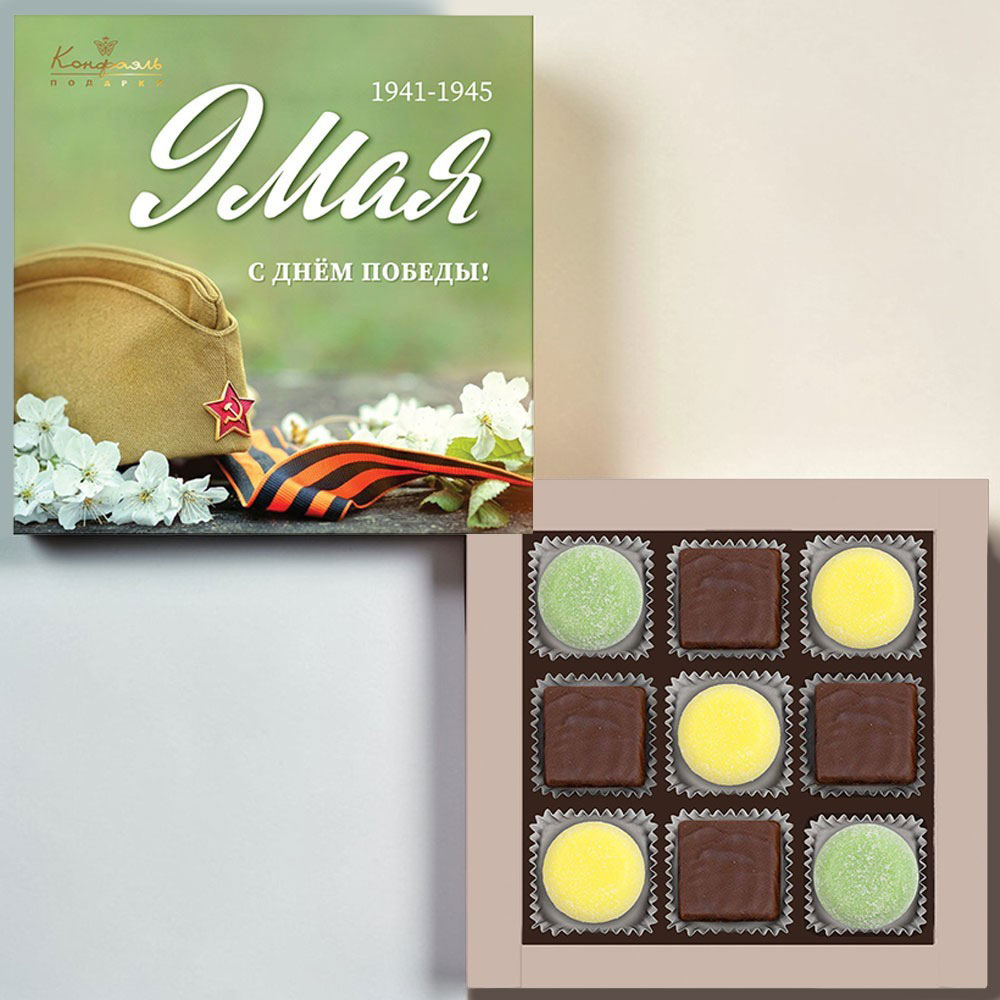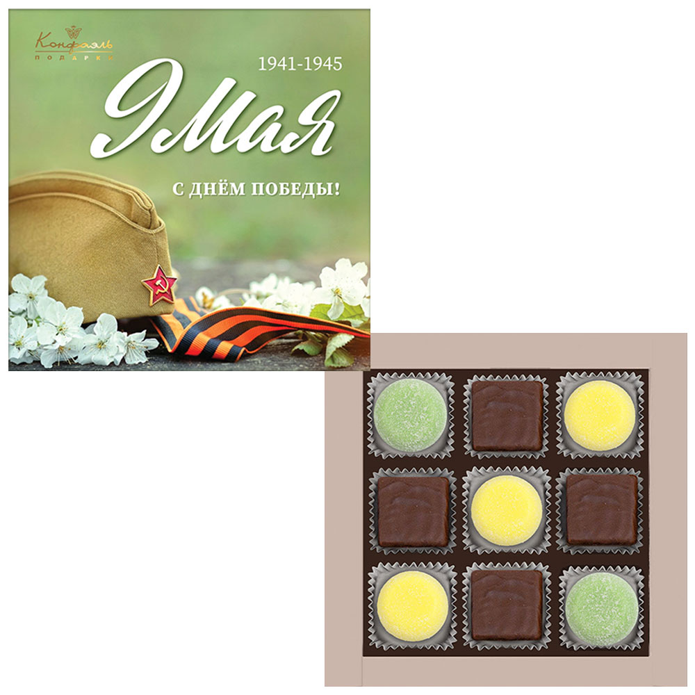 "9 мая" набор конфет ванильное суфле в горьком шоколаде, мармелад «Банан», «Зеленая дыня»