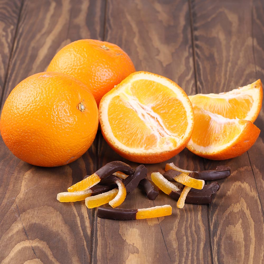 Сочный, спелый и ароматный апельсин — фрукт, из которого получаются вкусные конфеты и цукаты. Его кусочки прекрасно сочетаются с терпким темным шоколадом. Эта сладость имеет право называться классикой кондитерского искусства. Но шоколатье и технологи «Конфаэль» не ограничились производством апельсиновых долек в темном и горьком шоколаде. Они разработали рецептуры для других конфет, которые порадуют вкусом даже самых привередливых сладкоежек.