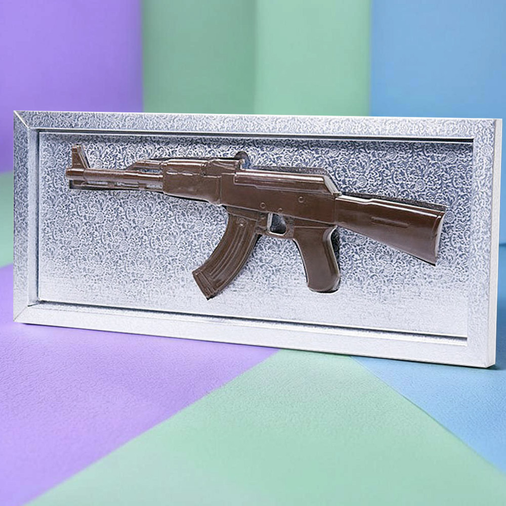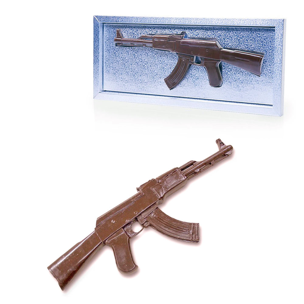 Сладкий презент «Автомат Калашникова», изготовленный из молочного шоколада, порадует вашего мужа, отца или брата не только сходством с настоящим оружием, но и бесподобным вкусом.