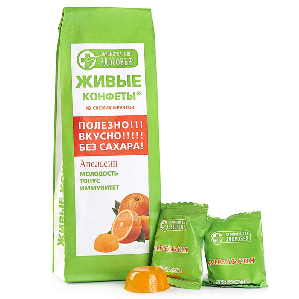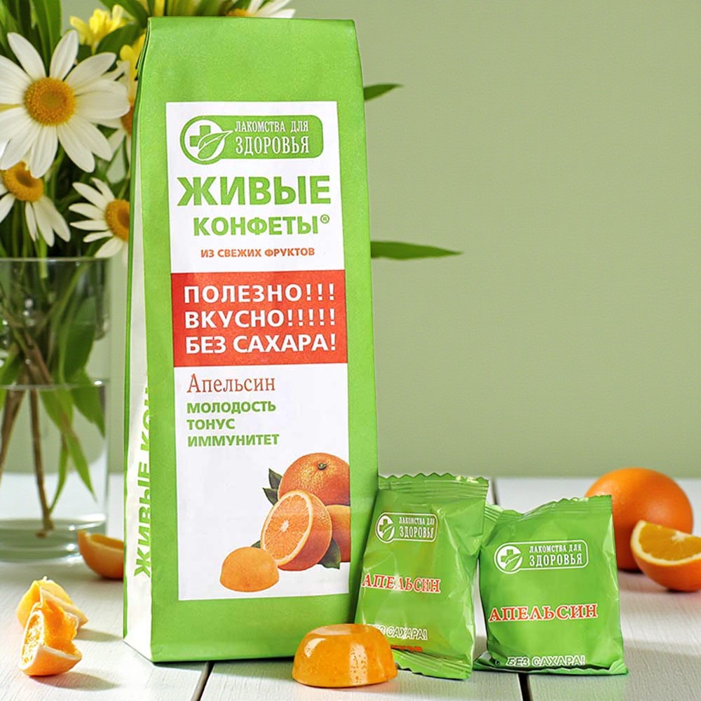 «Живые конфеты» с апельсином от «Конфаэль» - это вкусный и полезный десерт, который помогает улучшить аппетит. Кроме того, их применяют для профилактики гиповитаминоза, заболеваний сердца и сосудов.