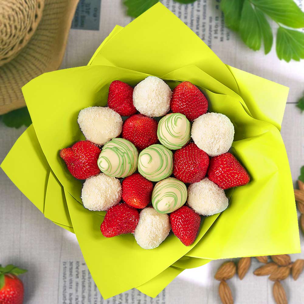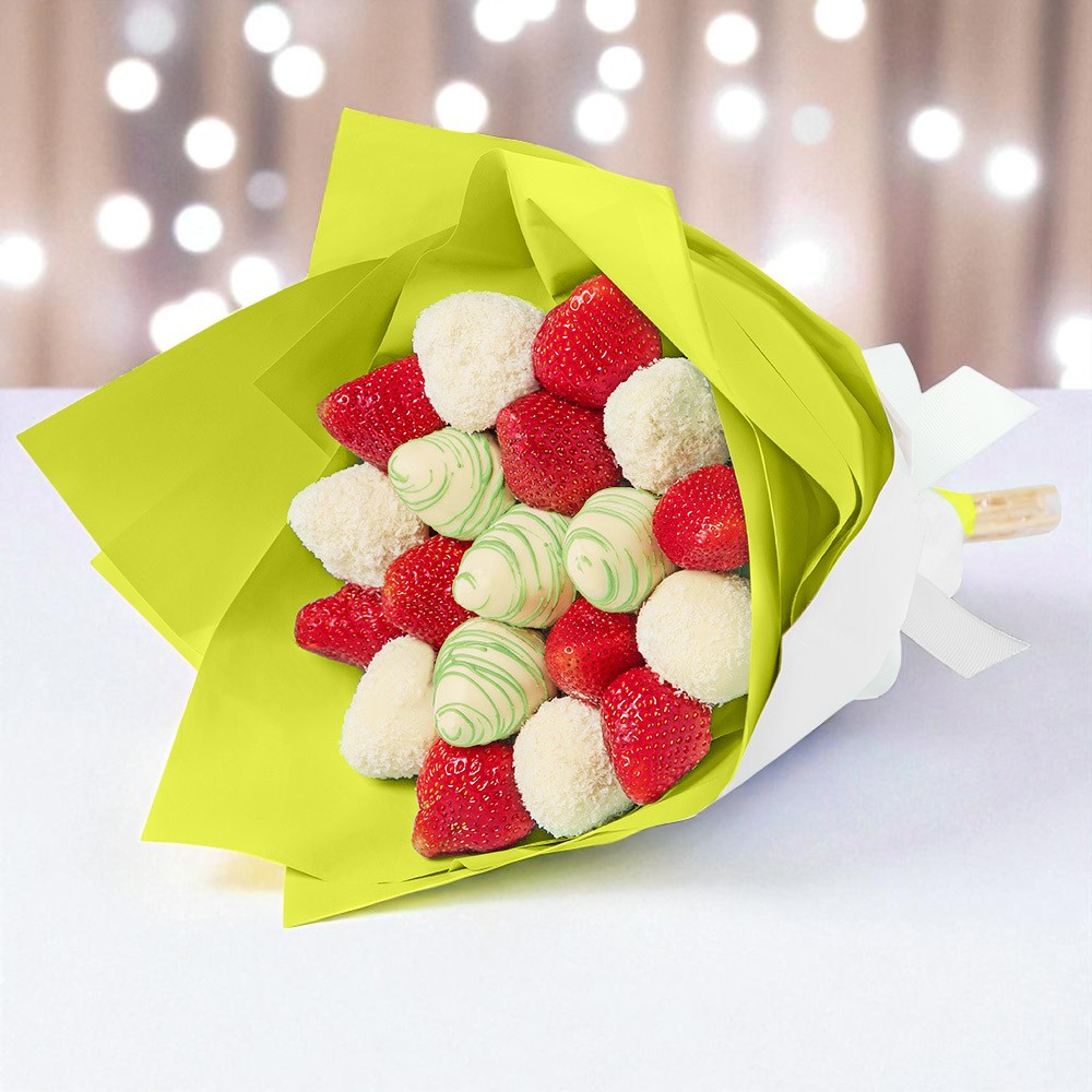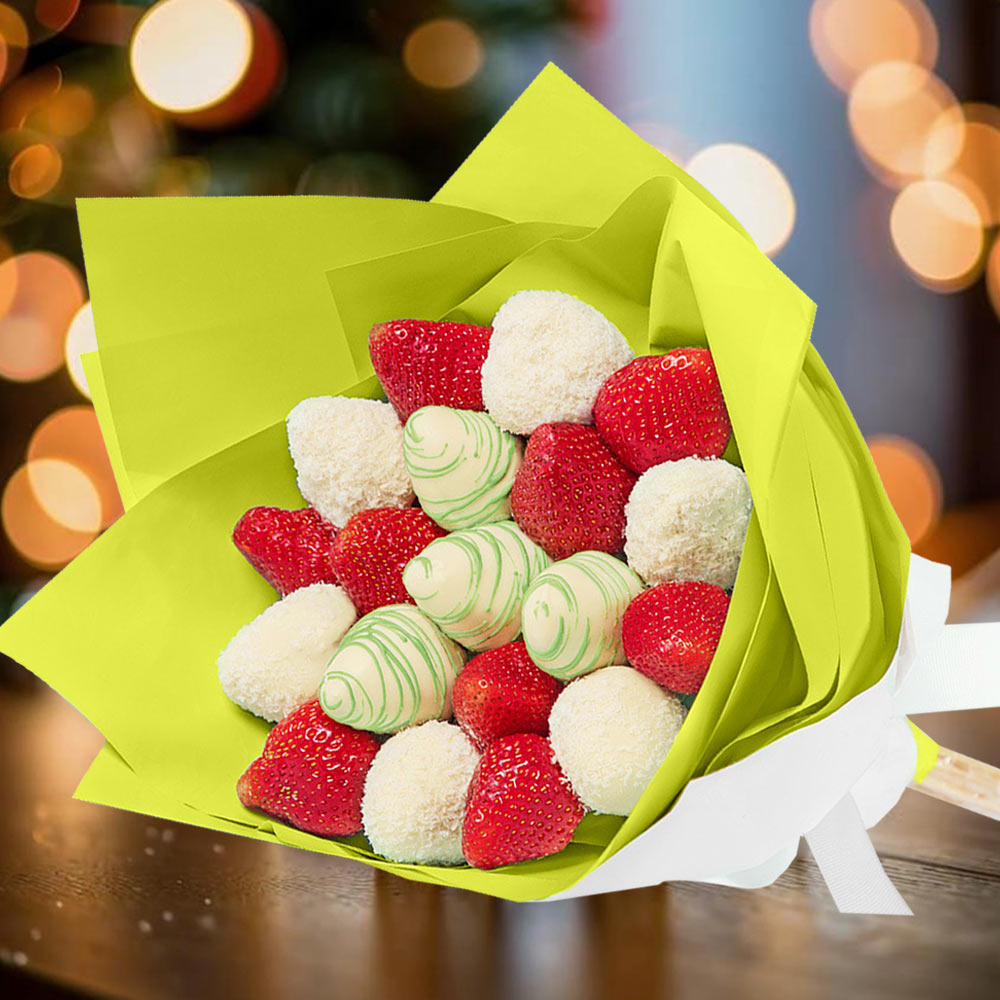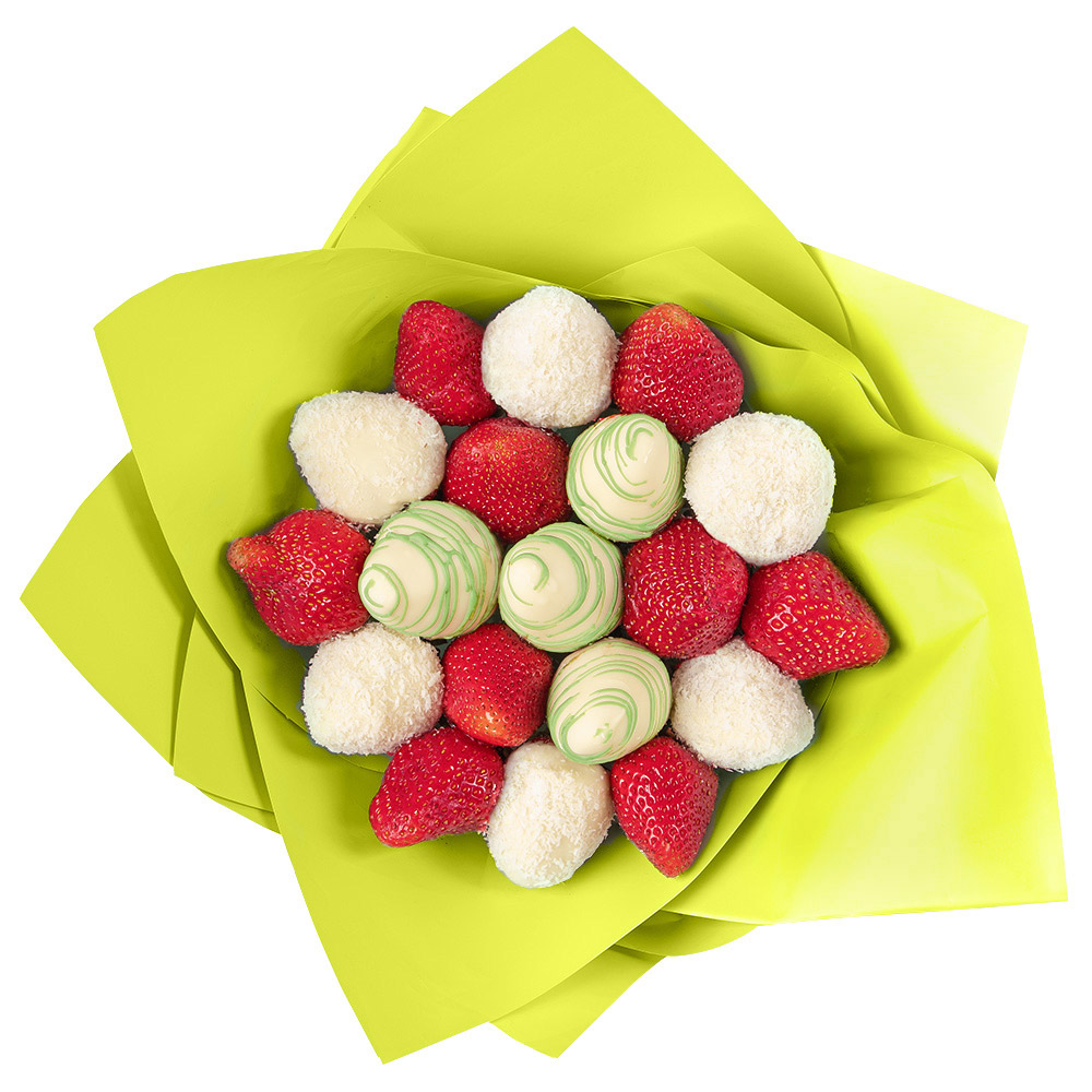 В наборе: Конфеты глазированные клубника в белом шоколаде с декором: