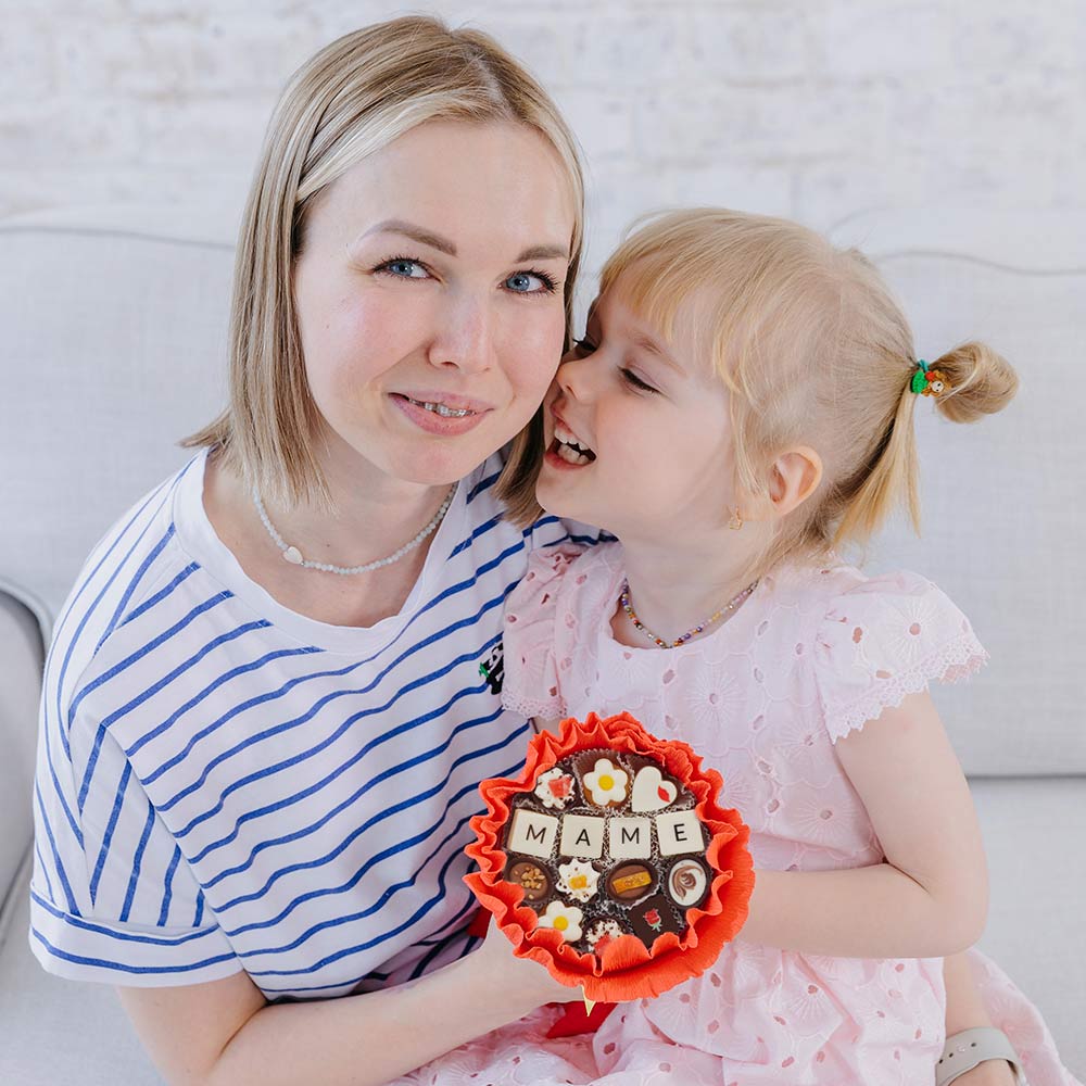 Красочный букет с конфетами-премиум из шоколада - замечательный подарок для любимой мамы в торжественный день юбилея так и по любому поводу. Пусть праздник будет радостным!