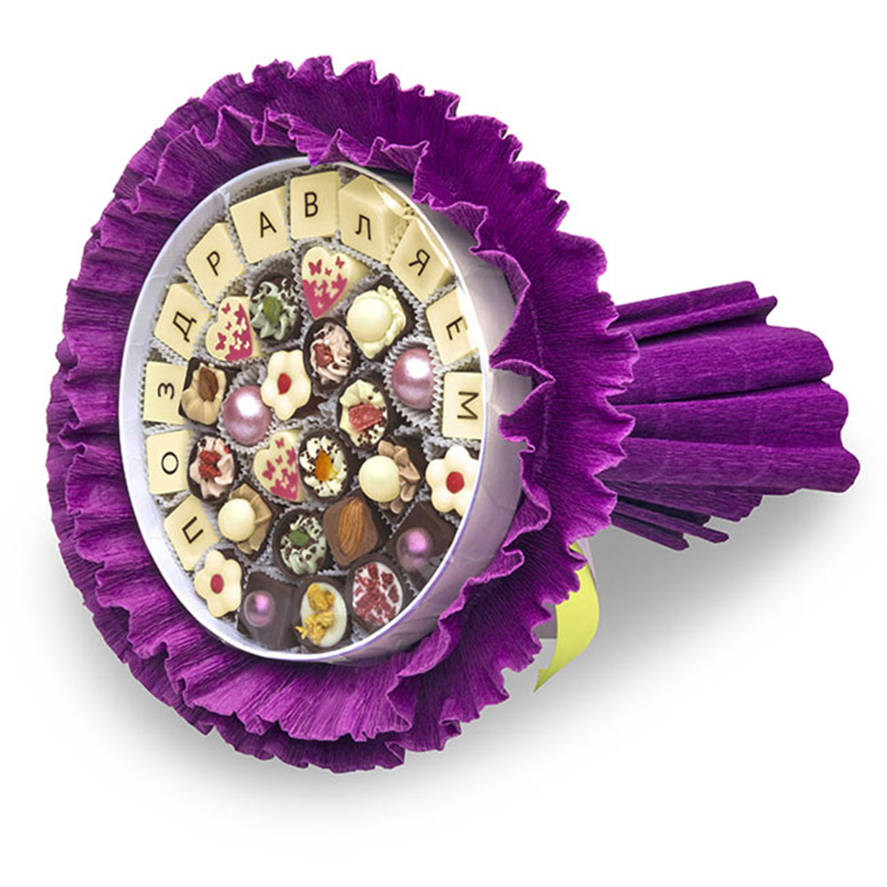 Роскошный букет с пожеланием, да ещё в сочетании с дивными лакомствами из настоящего шоколада, - это поистине царский подарок вашим близким или друзьям!