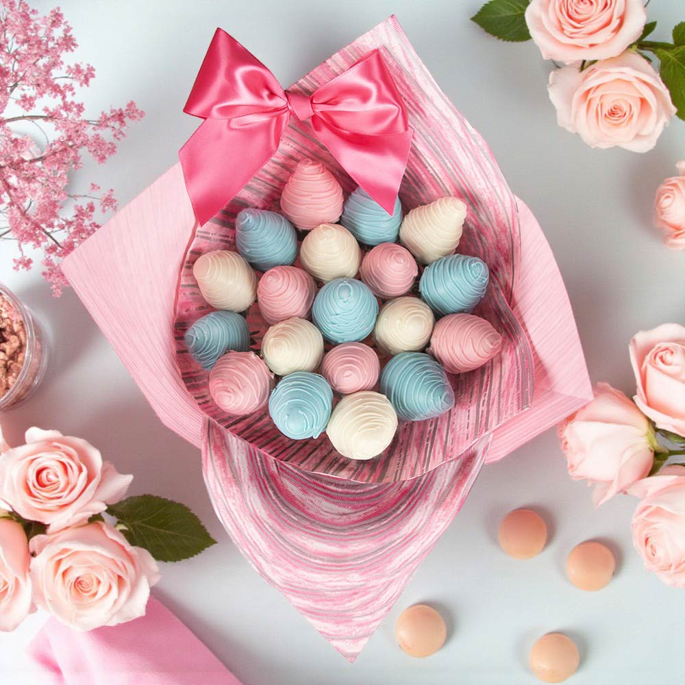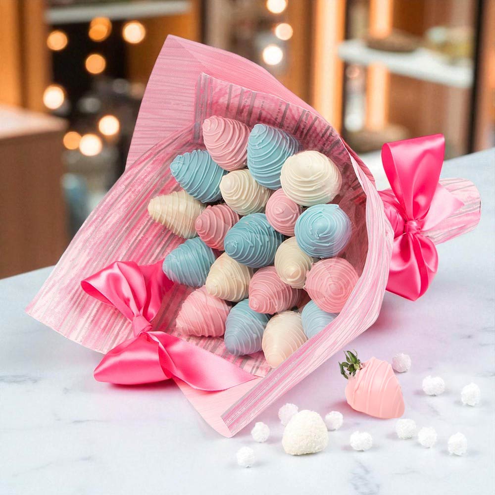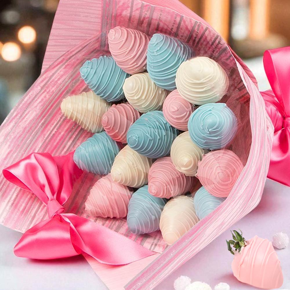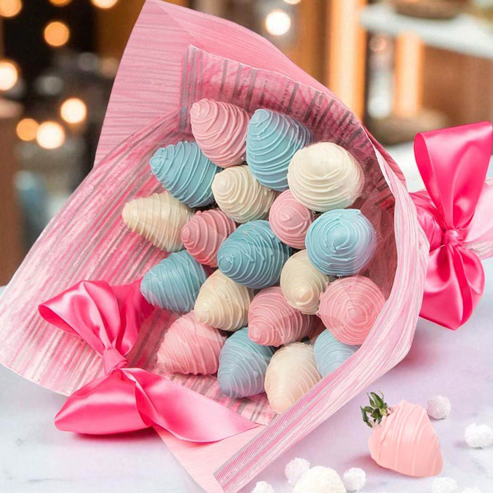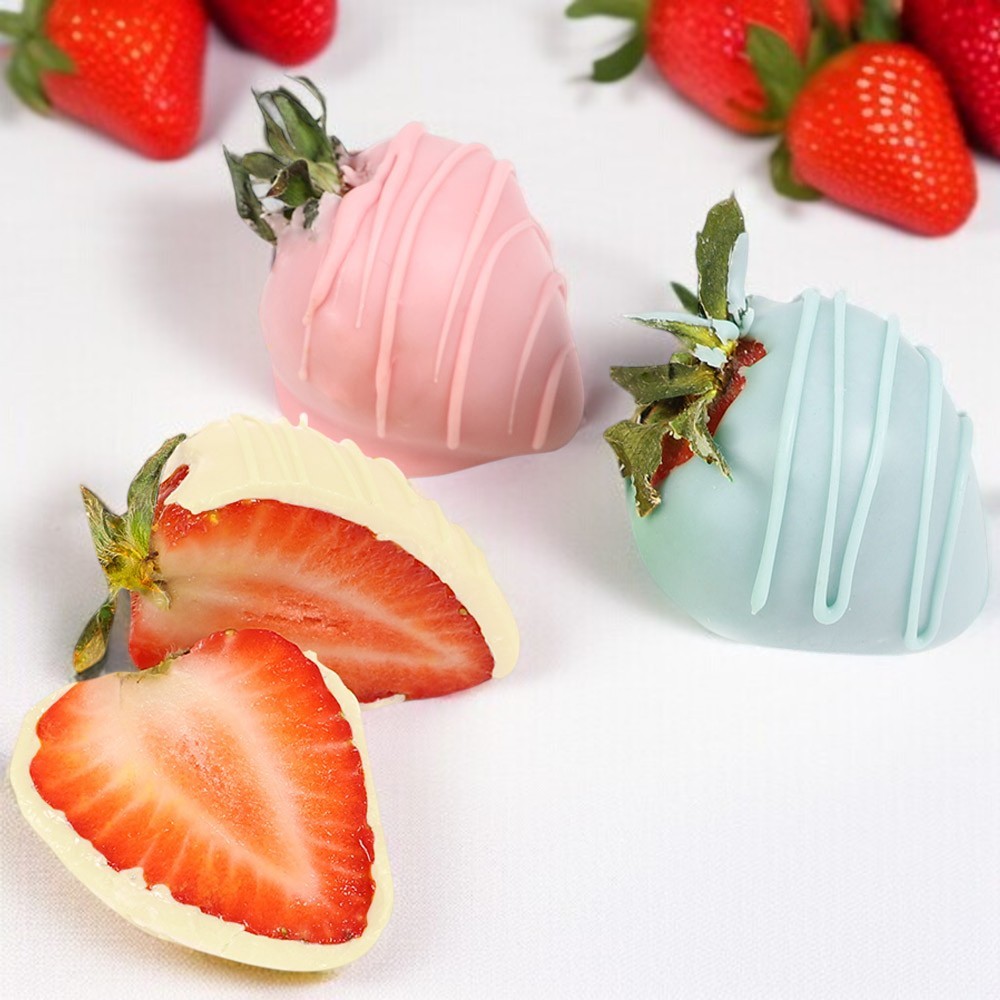 Конфеты глазированные: Свежая клубника в разноцветном белом шоколаде