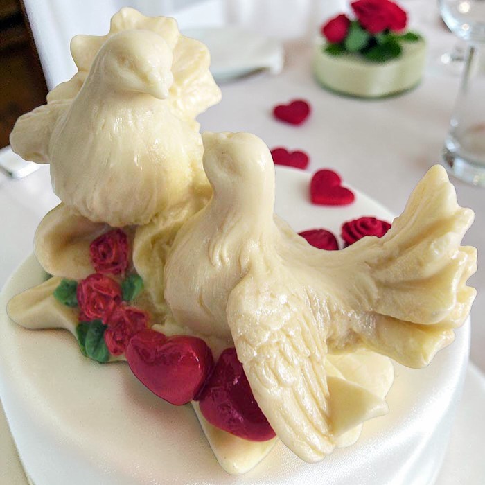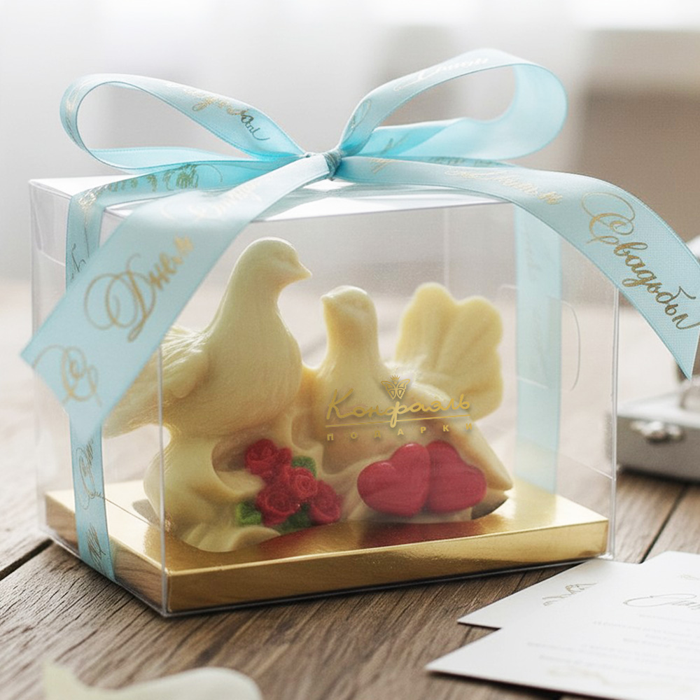 “Конфаэль” предлагает вам голубей, выполненный из вкуснейшего белого шоколада! Эти птицы смогут надолго остаться с молодожёнами и после торжества.