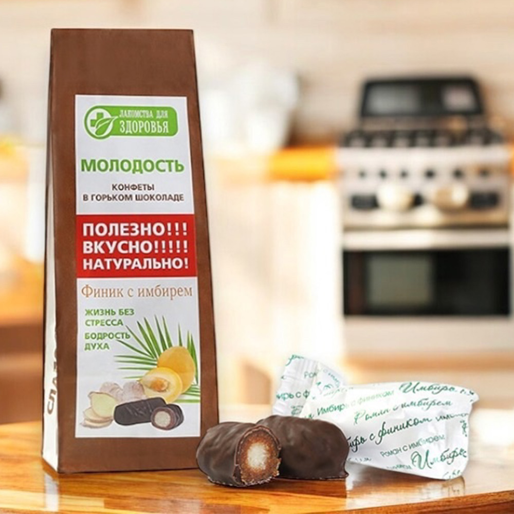 шоколадная масса – какао тертое, сахар, какао-масло, эмульгатор (лецитин соевый), ароматизатор «Ванилин»; начинка – чернослив, цукат имбиря (имбирь сушеный, сахар).