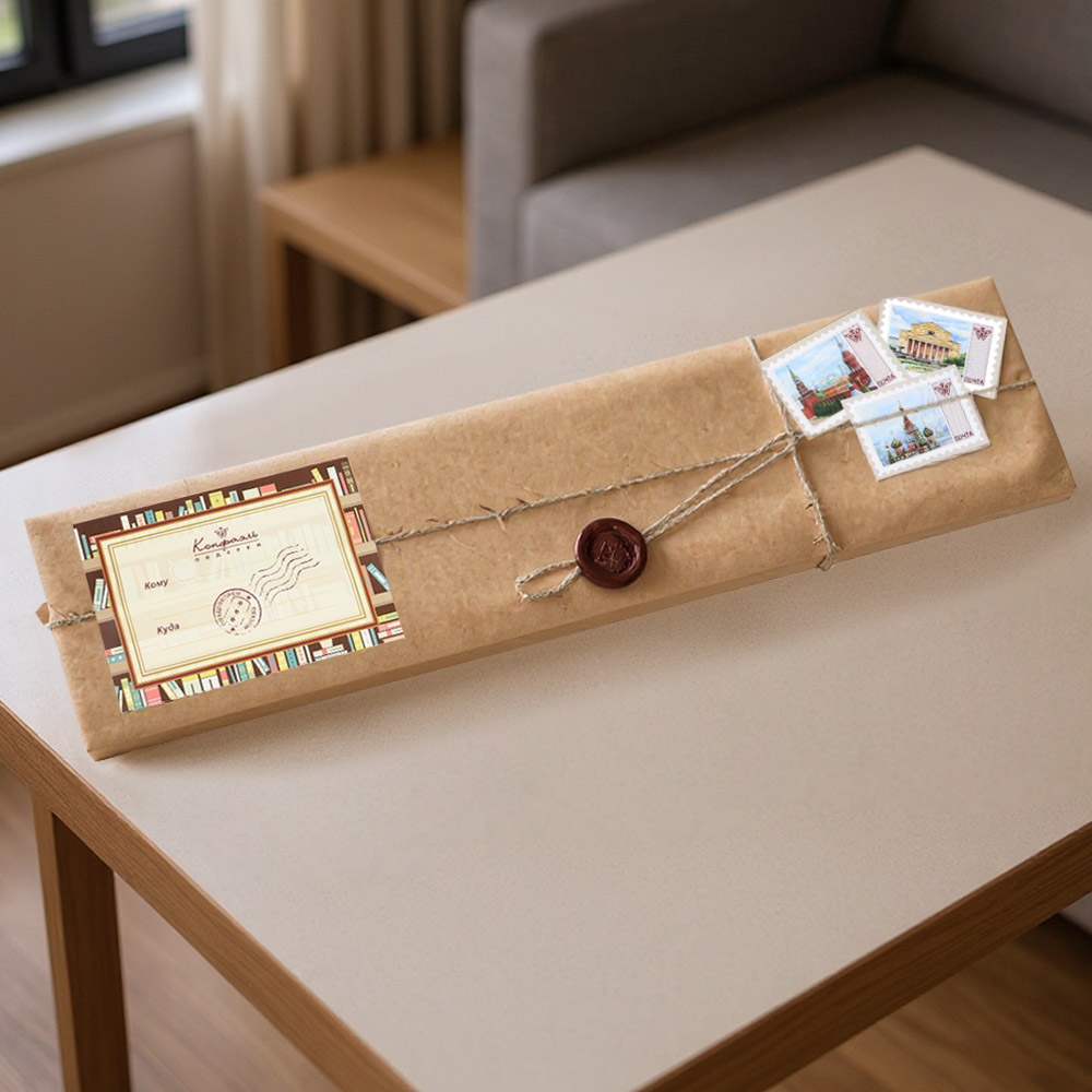 1) В крафтовой бумаге, с оформлением как телеграмма;