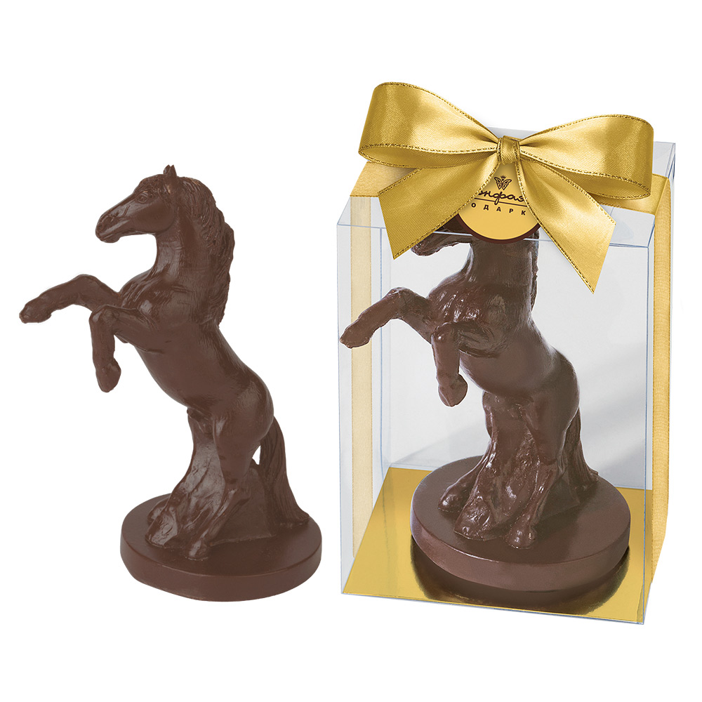 Лошади - одни из древнейших компаньонов человека. Этот конь, вставший на дыбы, абсолютно безопасен для близкого знакомства. Выполненный из вкуснейшего шоколада, он послужит прекрасной компанией для чаепития с друзьями.