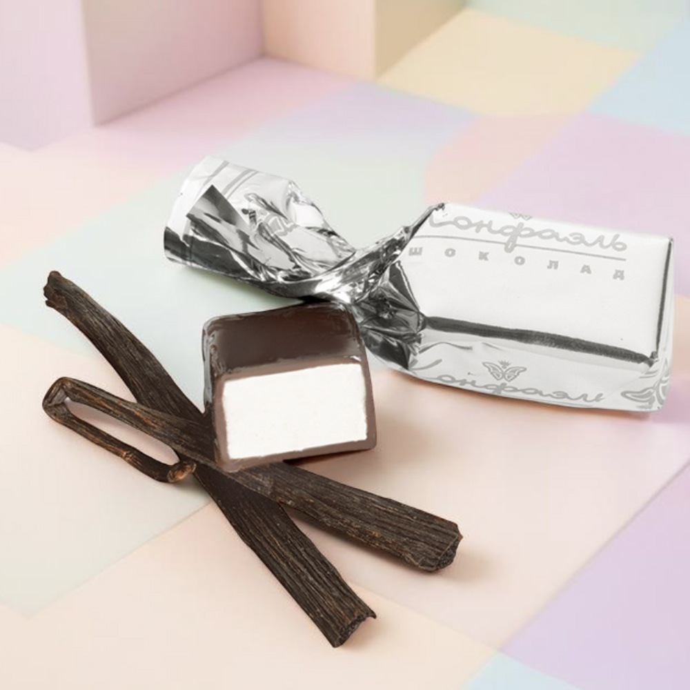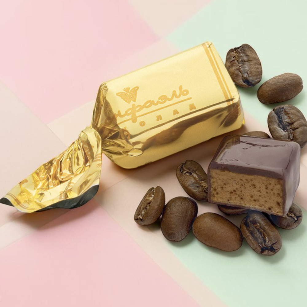 шоколадная масса – какао тертое, сахар, какао-масло, эмульгатор (лецитин соевый), ароматизатор («Ванилин»); начинки – сахар, патока, молоко сгущенное (молоко цельное, сахар (сахароза, лактоза)), масло сладко-сливочное, желирующий агент (агар), яичный белок, какао-порошок, эмульгатор (Е471), ароматизаторы («Карамель», «Кофе», «Ваниль»), натуральный пищевой краситель «Карамельный колер», натуральный экстракт ванили, натуральный экстракт кофе
