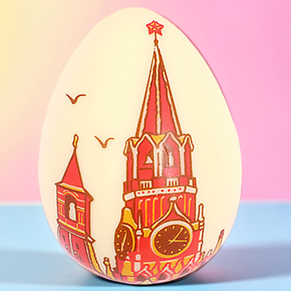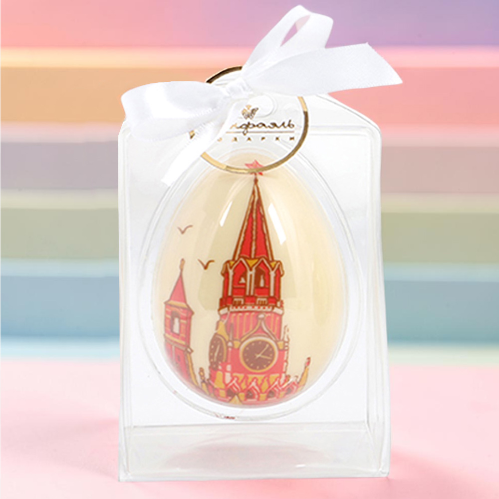 Сладкий сувенир из белого шоколада премиум-класса - яйцо с изображением Кремля - воплощает в себе дух города, поэтому изящная упаковка с этим лакомством - отличная идея для презента вашим близким и знакомым!