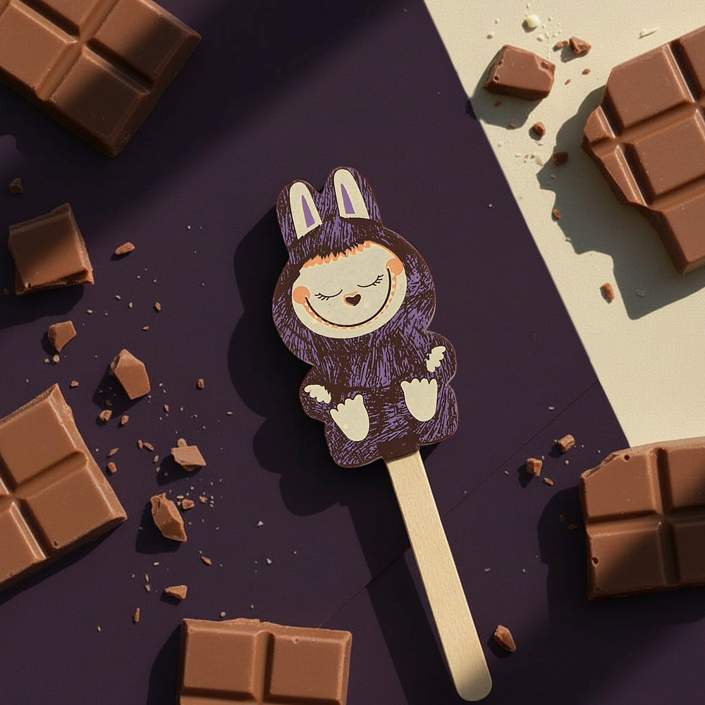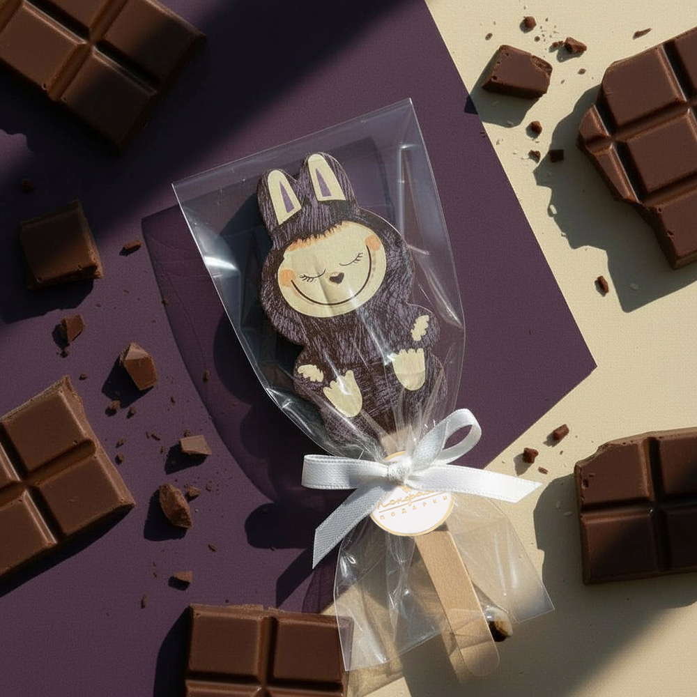 "Лабубушка" шоколад молочный на палочке 19г (фиолетовый декор)