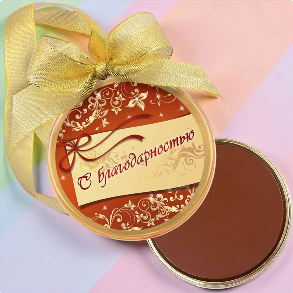 Подарите медаль из молочного шоколада "С благодарностью"! Этот нежный и ароматный шоколадный подарок станет замечательным символом Вашей признательности и радости.