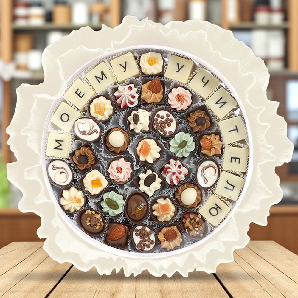 Десерт «Ассорти» с различными начинками и декором изготовлен мастерами из элитных сортов шоколада.