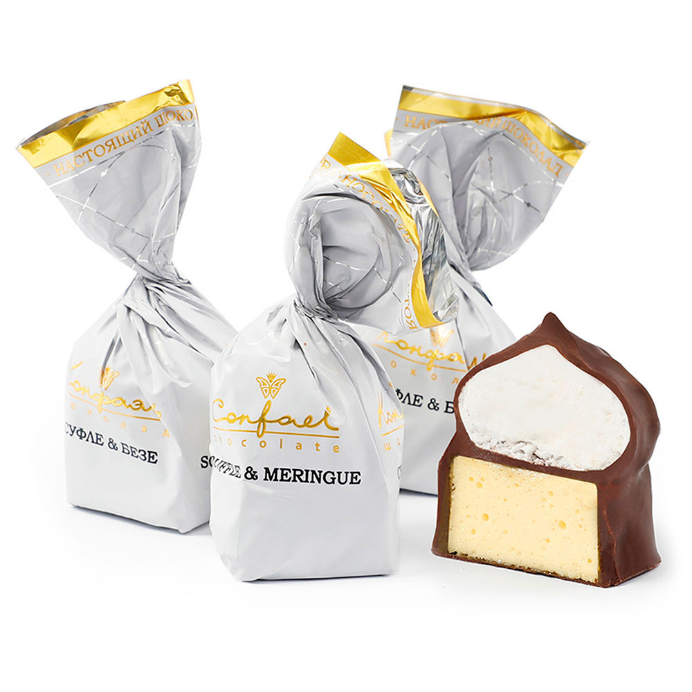 Набор двуслойных конфет: суфле со вкусом манго + ванильное безе в горьком шоколаде 145г