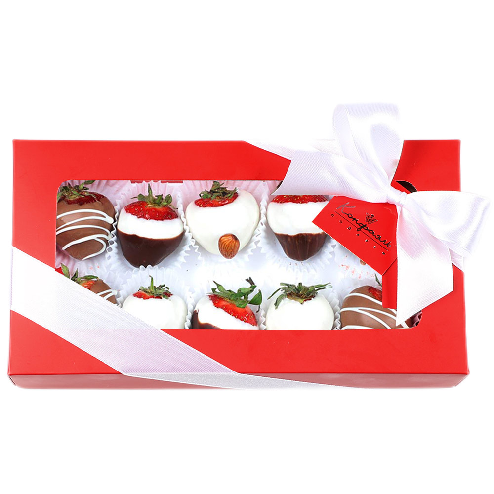 Конфеты глазированные "Клубника в шоколаде" с декором белым, горьким, молочным шоколадом и миндалем