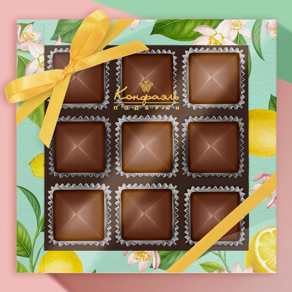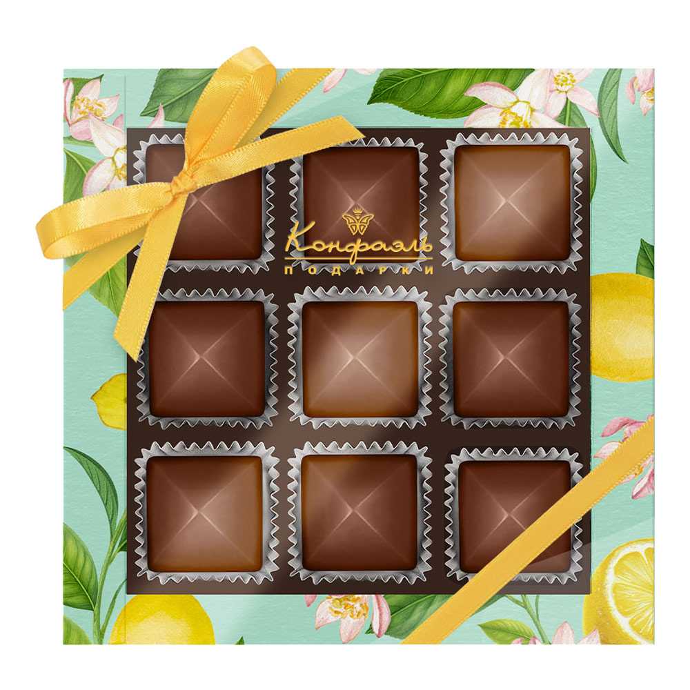 Состав: шоколад - сахар, масло какао, сыворотка молочная сухая, сухое цельное молоко, какао тёртое, эмульгатор (лецитин соевый), ароматизаторы; начинки - сахар, патока, какао-масло, какао тертое, молоко сгущенное (молоко цельное, сахар (сахароза, лактоза)), стабилизаторы (мальтодекстрин), коньяк (дистиллят коньячный, вода, сахар, пищевой краситель (сахарный колер)), спирт этиловый ректификованный, консервант (сорбиновая кислота), регулятор кислотности (лимонная кислота), эмульгаторы (лецитин соевый, Е471), ароматизаторы.