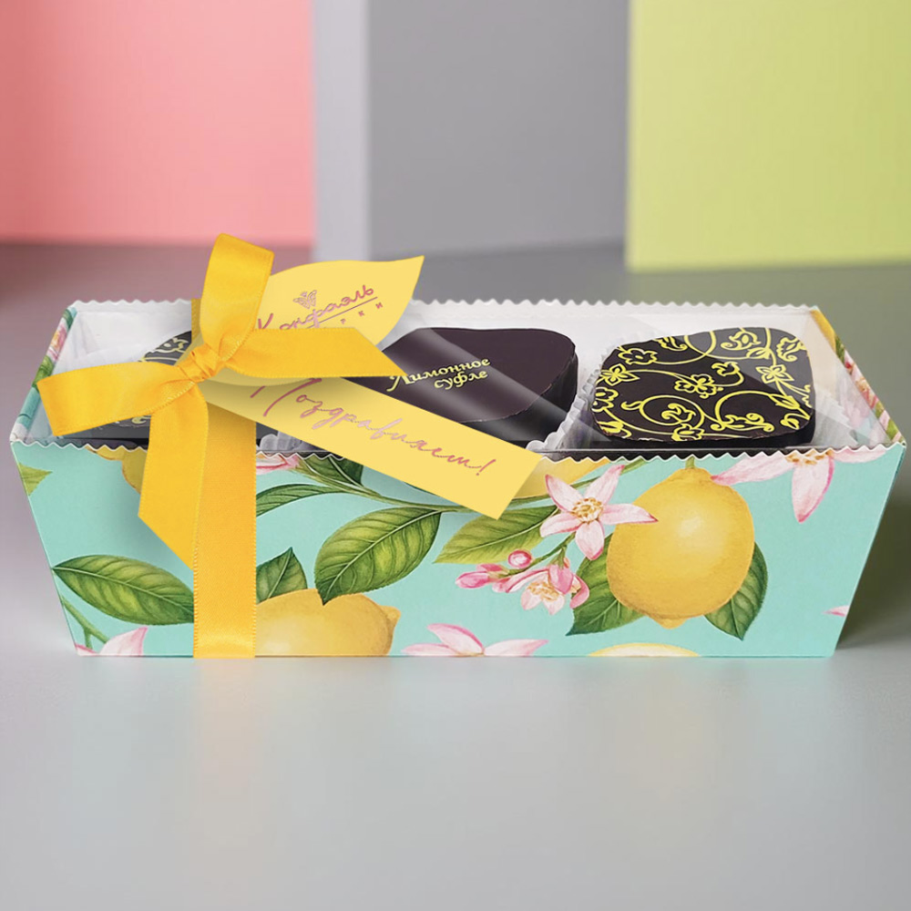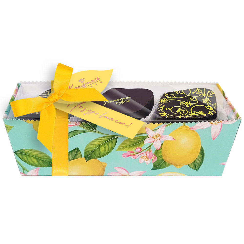 Конфеты глазированные горьким шоколадом "Суфле" (лимонное) с декором