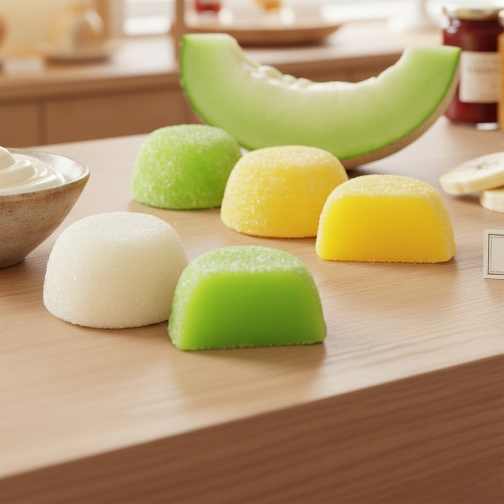 Представляем Вашему вниманию уникальный продукт, созданный специально для сладкоежек всех возрастов — желейный мармелад со свежими и яркими вкусами, такими как нежная сливочная намелака, ароматная зеленая дыня и насыщенный банан. Каждый кусочек дарит настоящее наслаждение, возвращая вас в беззаботные дни детства.