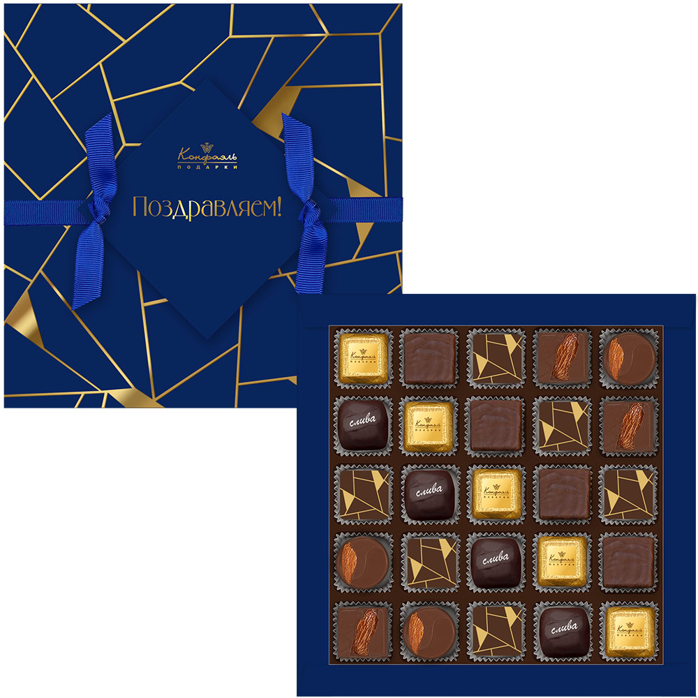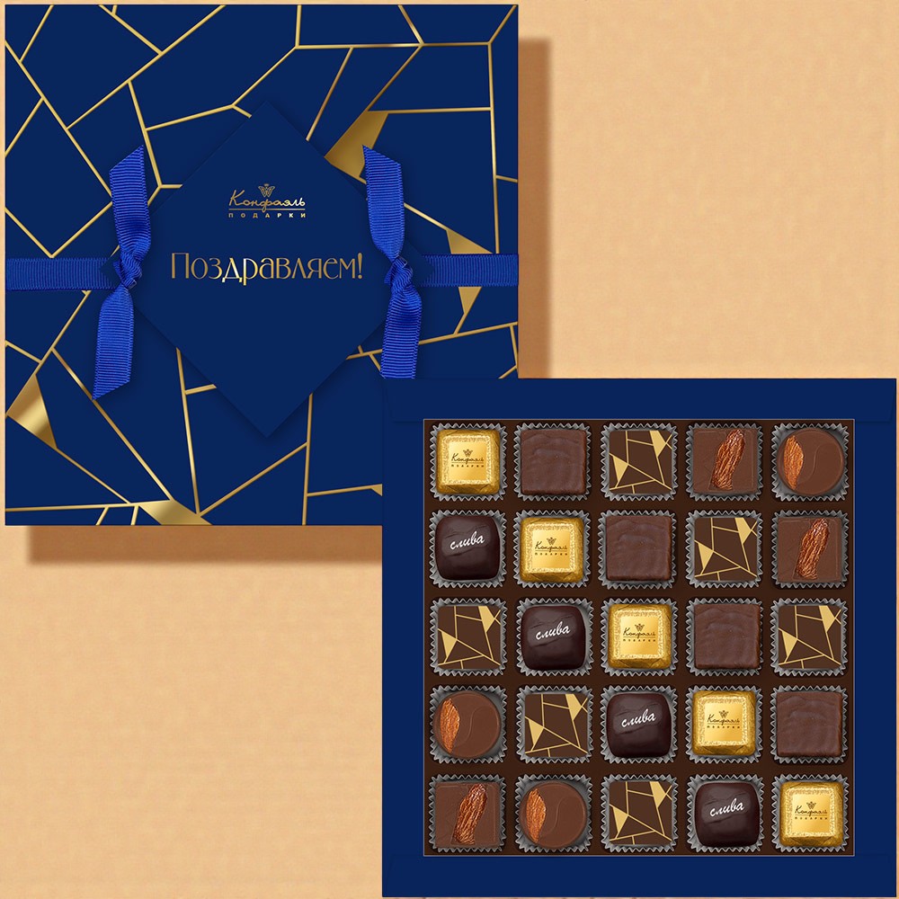 Представляем изысканный набор шоколадных конфет — идеальное решение для поздравления мужчин на 23 Февраля, а также для проявления внимания коллегам, друзьям и близким в любой значимый день.