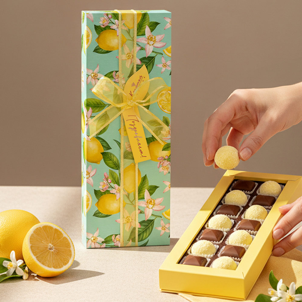 Состав: шоколад - сахар, масло какао, сыворотка молочная сухая, сухое цельное молоко, какао тёртое, эмульгатор (лецитин соевый), ароматизаторы; начинки - сахар, патока, какао-масло, какао тертое, молоко сгущенное (молоко цельное, сахар (сахароза, лактоза)), стабилизаторы (мальтодекстрин), желирующий агент (агар), желатин говяжий, коньяк (дистиллят коньячный, вода, сахар, пищевой краситель (сахарный колер)), спирт этиловый ректификованный, консервант (сорбиновая кислота), регулятор кислотности (лимонная кислота), эмульгаторы (лецитин соевый, Е471), ароматизаторы, пищевые красители (Е171, куркумин).