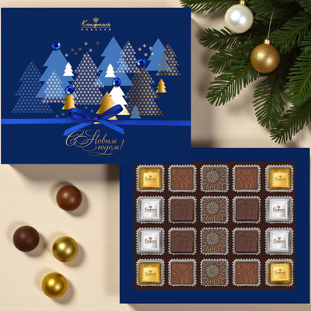 Состав: шоколадные массы – сахар, масло какао, молоко цельное сухое, сухое обезжиренное молоко, какао тертое, какао-порошок, сыворотка молочная сухая, пахта сухая, молочный жир, паста ореховая из ядер фундука, эмульгаторы (соевый лецитин, Е476), соль, натуральная ваниль, ароматизаторы; начинки – сахар, патока, молоко сгущенное (молоко цельное, сахар (сахароза, лактоза)), жир специального назначения (масло ши, рапсовое масло, соевое масло, антиокислитель( лимонная кислота)), молоко сухое цельное, молоко сухое обезжиренное, белый шоколад (сахар, масло какао, сухое обезжиренное молоко, сухое цельное молоко, эмульгатор (лецитин соевый), экстракт ванили), масла растительные рафинированные дезодорированные (подсолнечное, рапсовое, оливковое; масло сладко-сливочное, молоко сухое обезжиренное), масло сладко - сливочное, белок яичный порошкообразный, вафельная крошка( мука пшеничная х/п первого сорта, сахар, масло кокосовое рафинированное дезодорированное, эмульгатор( лецитин соевый), пшеничные волокна (клетчатка), ароматизатор), клубника сушеная, кумкват сушеный, цукаты лимонных корочек, папайя сушеная, ананас сушеный, финики, чернослив, абрикос сушеный, ядра орехов фундука, ядра орехов миндаля, стабилизатор (мальтодекстрин), желирующий агент (агар), коньяк (дистиллят коньячный, вода, сахар, пищевой краситель (сахарный колер)), спирт этиловый ректификованный, консервант (сорбиновая кислота), регулятор кислотности (лимонная кислота), эмульгаторы (лецитин соевый, Е471), сухой сок ананаса, ароматизаторы, пищевые красители (сахарный колер, куркумин, медные комплексы хлорофиллов и хлорофиллинов); декор – пищевые красители (Е132, Е172, Е171, куркумин, медные комплексы хлорофиллов и хлорофиллинов).