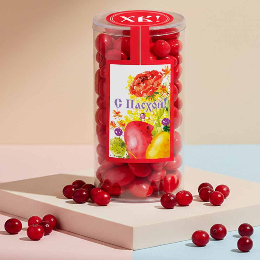 Состав: клюква сушеная, какао-масло, сахар, молоко сухое цельное, молоко сухое обезжиренное, лактоза, патока, регулятор кислотности (лимонная кислота), эмульгатор (лецитин соевый), ароматизаторы («Ванилин», «Клюква»), пищевой краситель (концентрированный сок красной редиски, масло подсолнечное, эмульгаторы (мальтодекстрин, Е472с), регуляторы кислотности (лимонная кислота, аскорбиновая кислота)), глазирователь (капол)