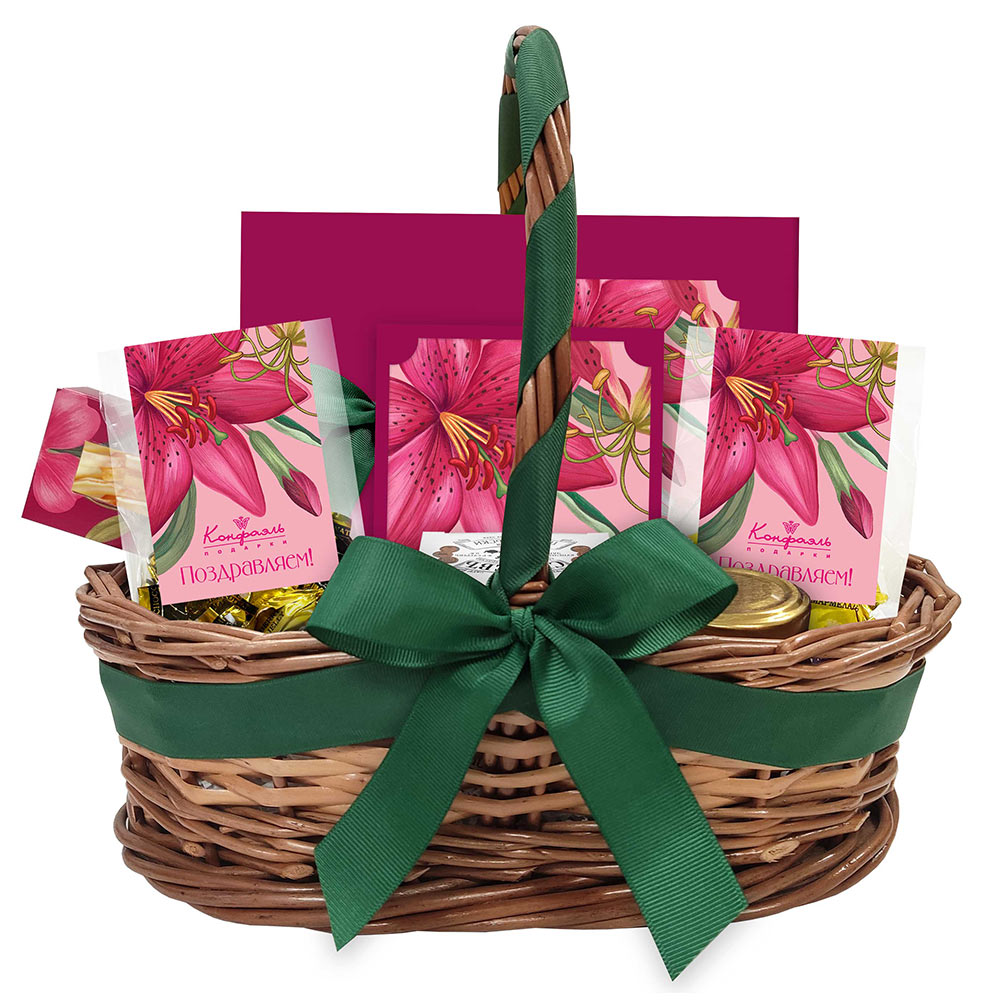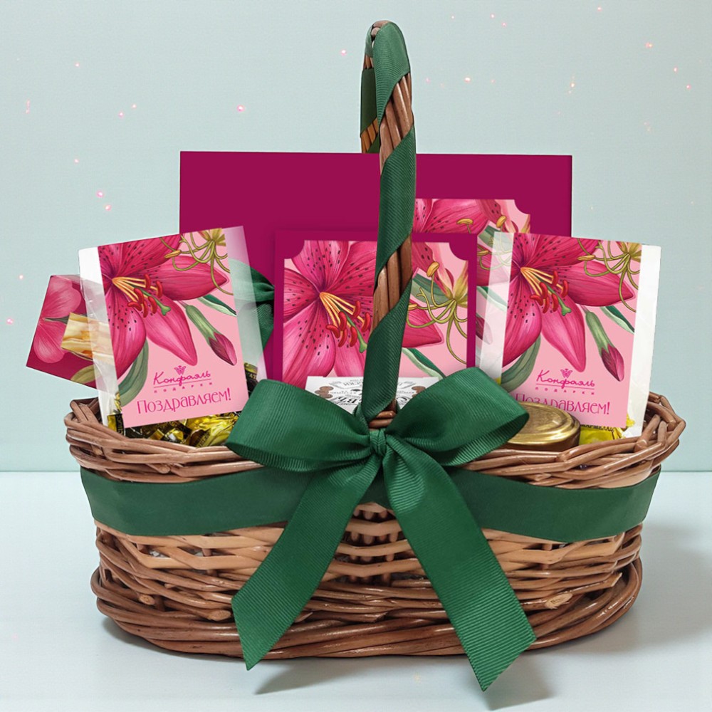Поздравление 06/ Шоколадные конфеты «Ассорти» со сливочными начинками, конфеты «Суфле» в горьком шоколаде со вкусом «Игристого розе»/ 45г