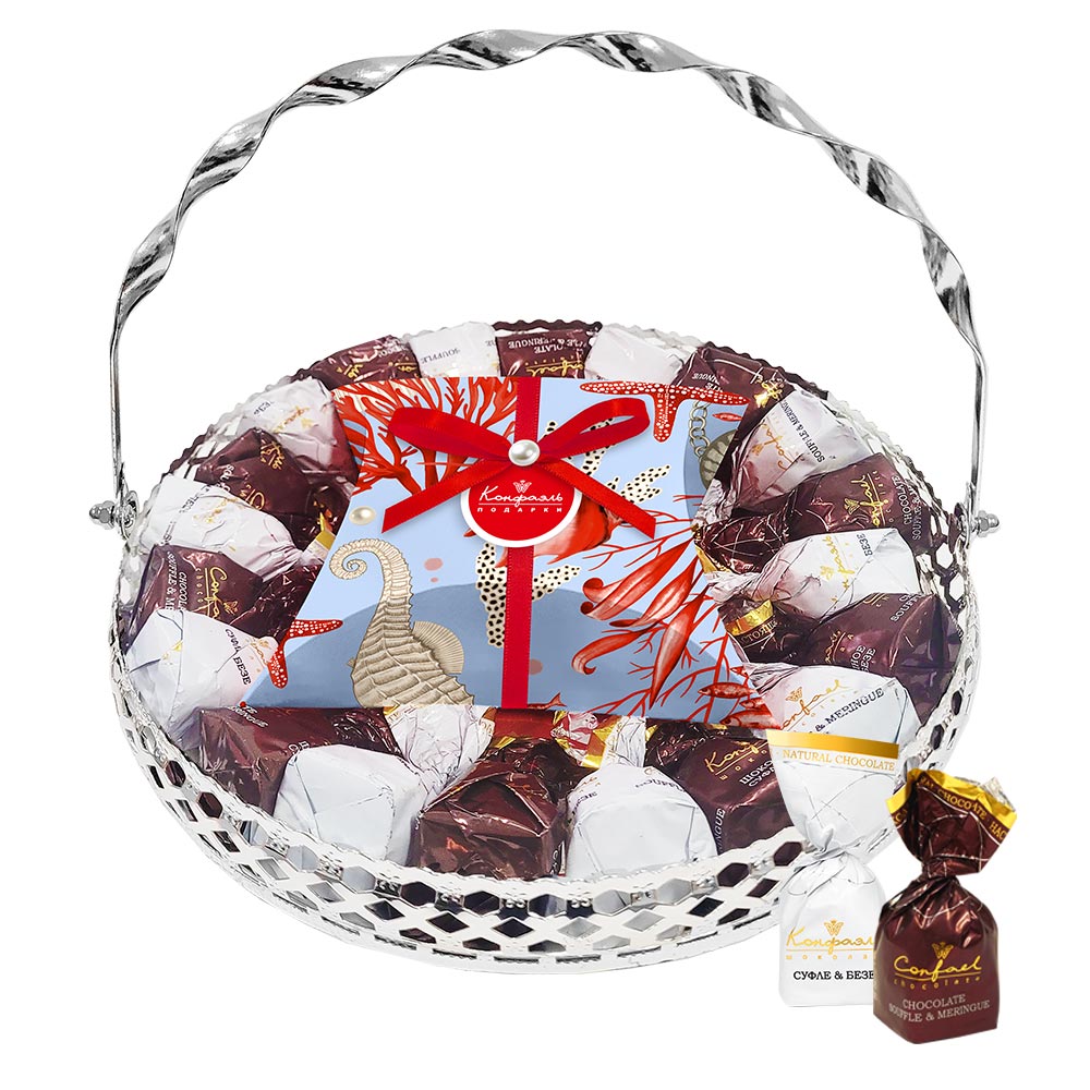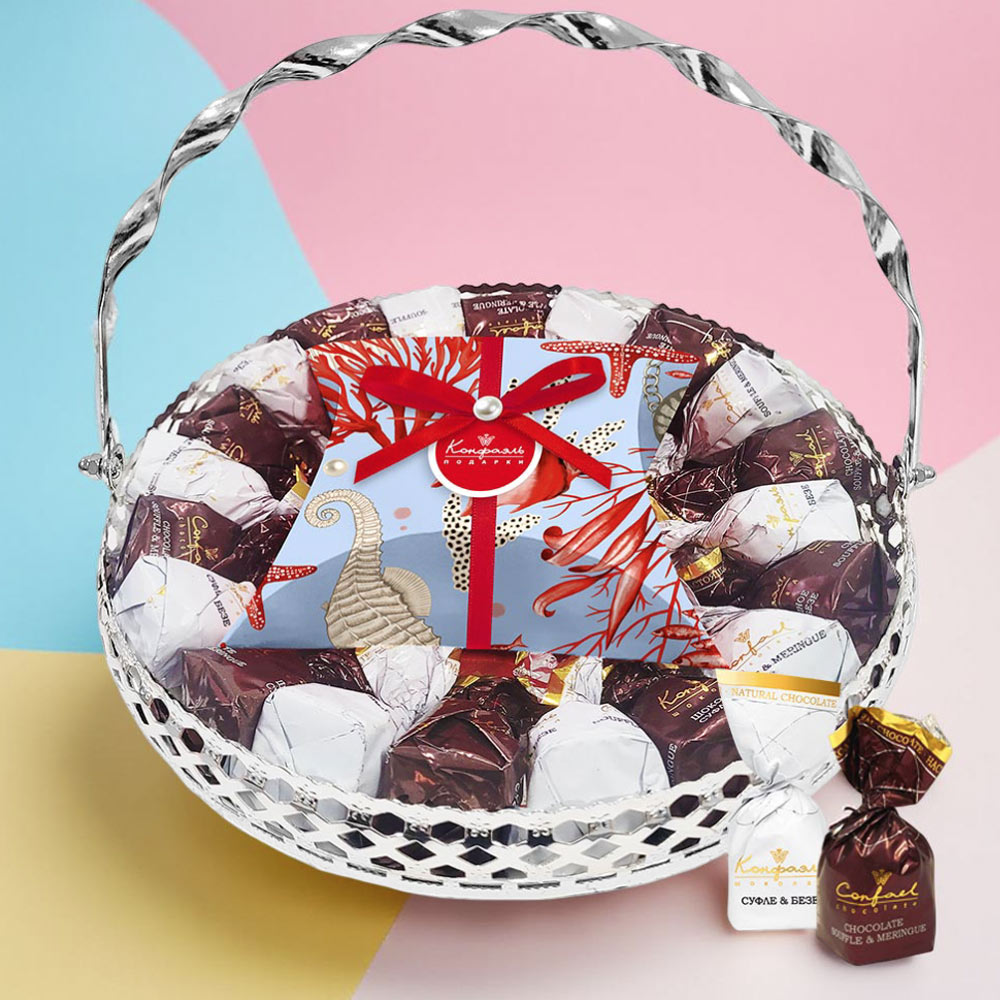 Состав: шоколад - сахар, какао тёртое, масло какао, эмульгатор (лецитин соевый), ароматизатор; начинки - сахар, патока, молоко сгущенное (молоко цельное, сахар (сахароза, лактоза)), масло сладко - сливочное, белок яичный порошкообразный, сухой сок клубники, какао-порошок, желирующий агент (агар), желатин говяжий, консервант (сорбиновая кислота), регулятор кислотности (лимонная кислота), эмульгаторы (лецитин соевый, Е471), ароматизаторы, пищевые красители (паприка, красный свекольный).