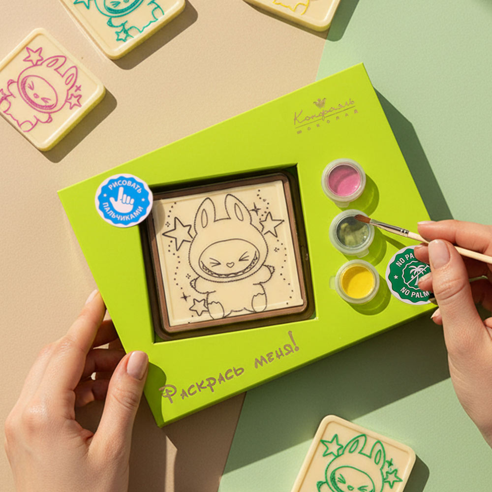 Шоколадная раскраска «Лабубушка» — это не просто сладость, это возможность создать что-то особенное своими руками. Подарите радость творчества и наслаждения настоящим шоколадом!