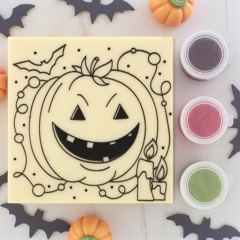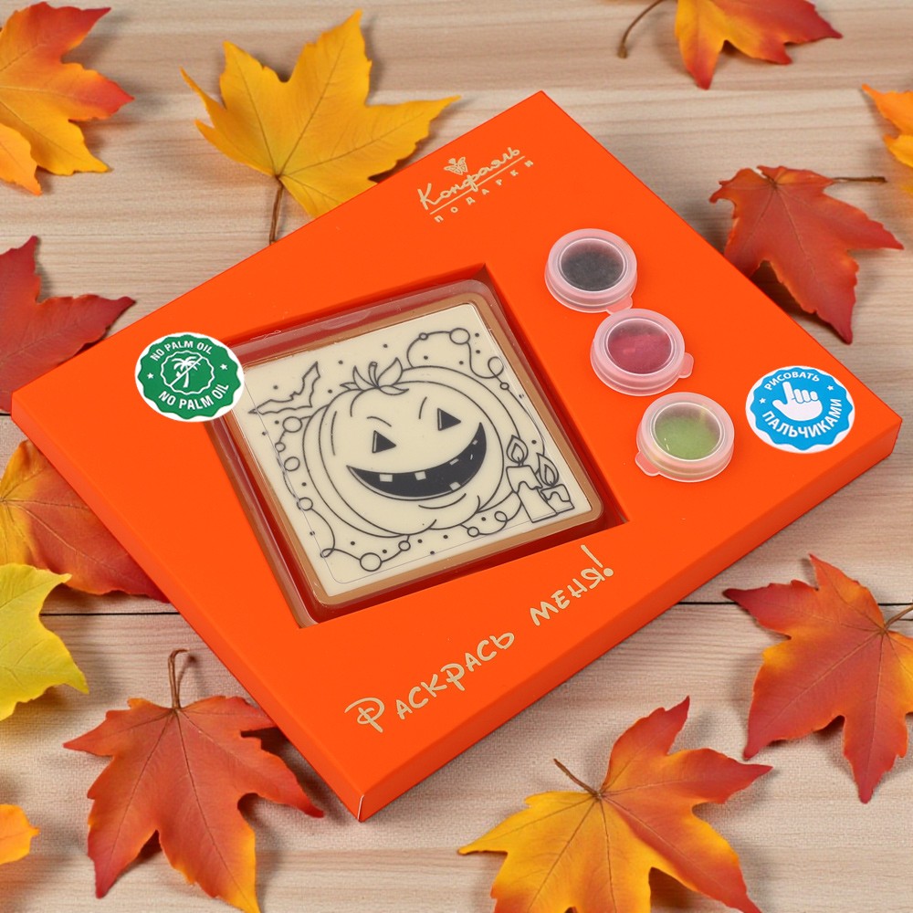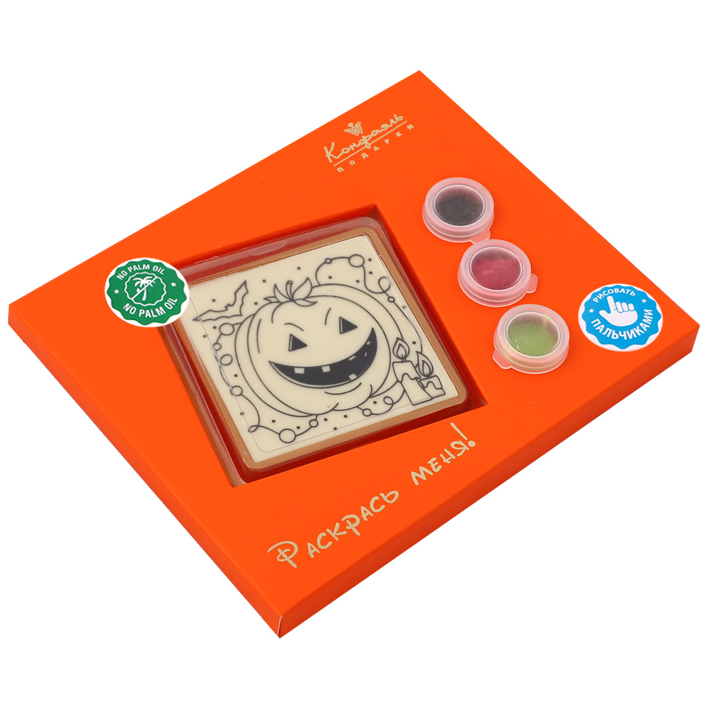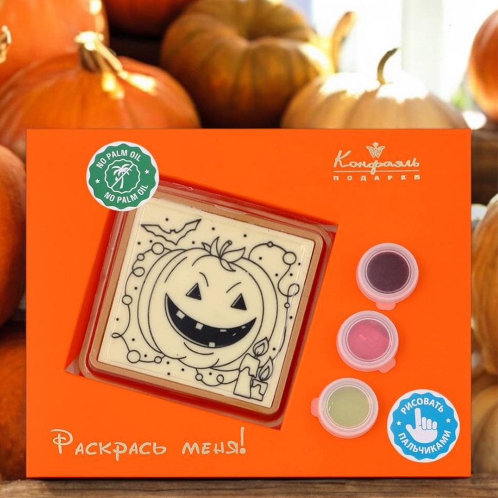 Набор шоколада: декорированное полотно из белого шоколада, цветная глазурь.