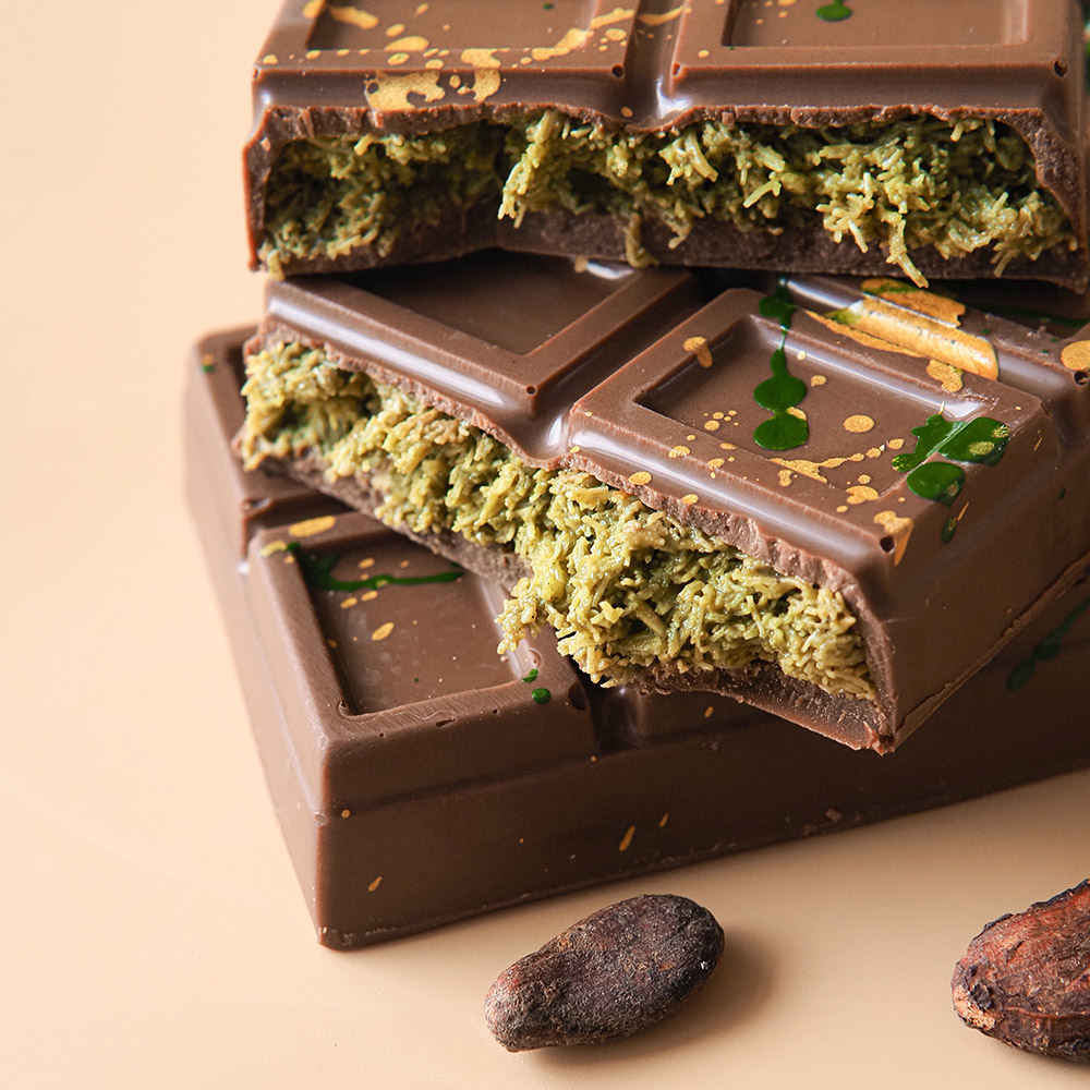 Состав: сахар, масло какао, сыворотка молочная сухая, тертое какао, пахта сухая, эмульгатор (лецитин соевый); декор – куркумин, красный свекольный, Е171.