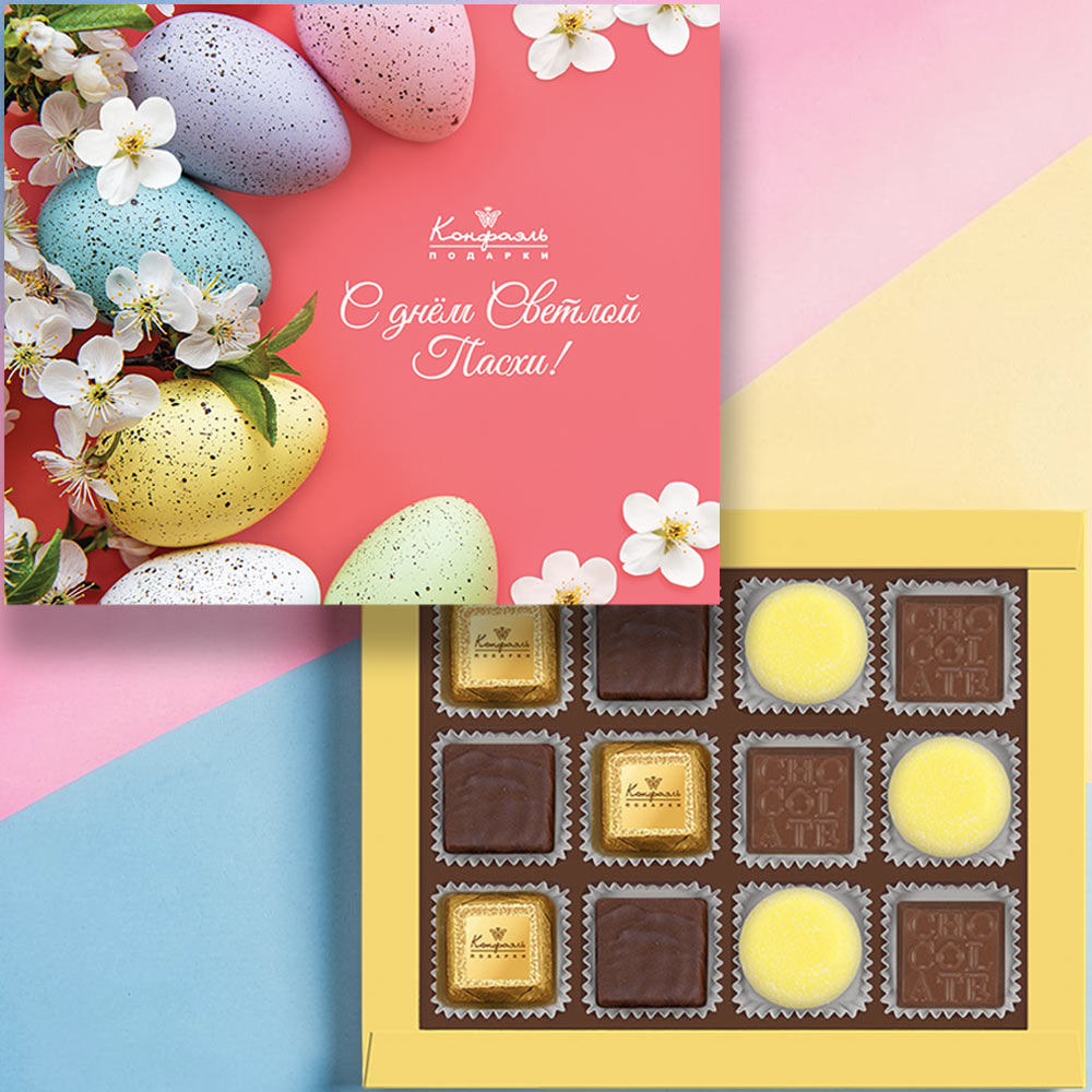 "С Днём Светлой Пасхи" набор шоколадных конфет и мармелада