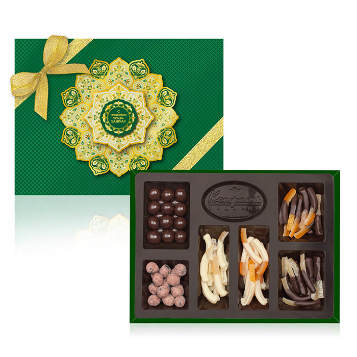 Ураза-Байрам, известный также как Праздник Разговения, отмечается в честь окончания поста в месяц Рамадан. Ураза-Байрам один из главных праздников мусульманских народов – в этот день мусульмане одевают лучшие одежды, делятся сладостями и предаются веселому настроению. Набор драже и цукатов «С праздником Ураза-Байрам» как нельзя лучше передает настроение этого дня !