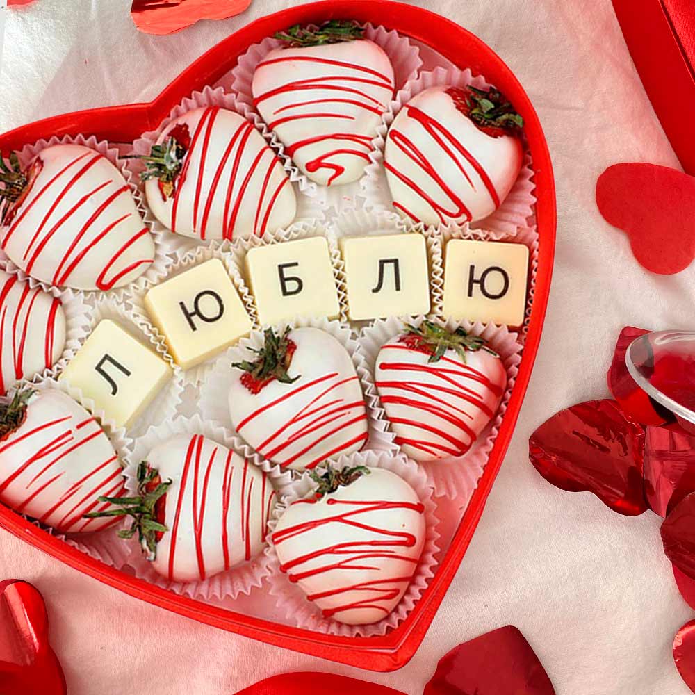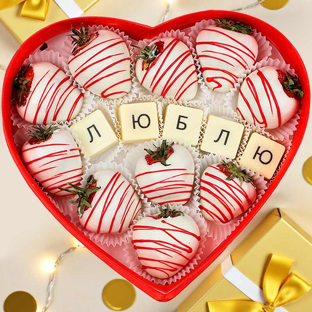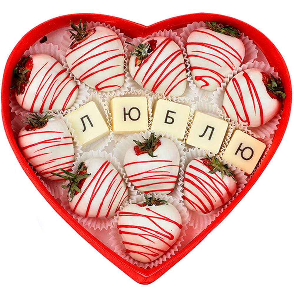 Состав: клубника свежая; шоколадная масса - какао-масло, сахар, молоко сухое цельное, молоко сухое обезжиренное, лактоза, эмульгатор (лецитин соевый), ароматизатор («Ванилин»), натуральный пищевой краситель «Кармин», Е132, Е171, «Куркумин».