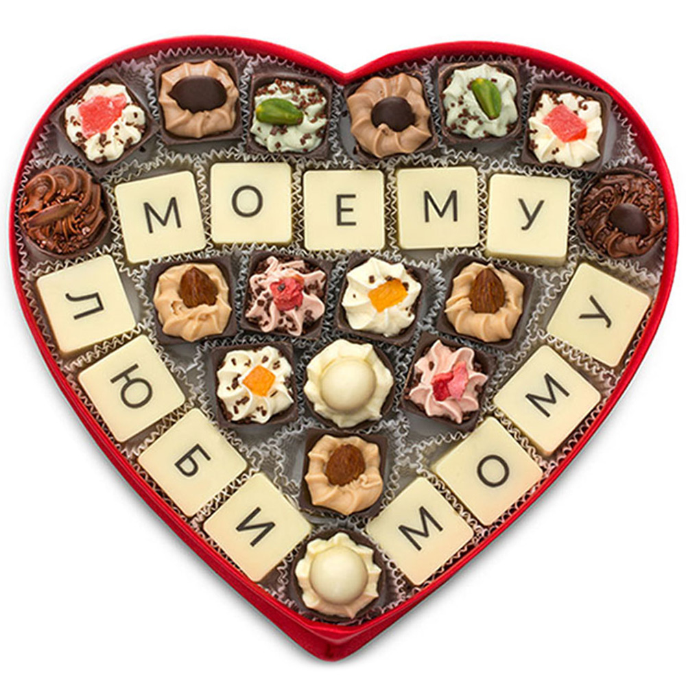 шоколадные массы – какао-масло, какао-тертое, сахар, молоко сухое цельное, молоко сухое обезжиренное, лактоза, эмульгатор (лецитин соевый), ароматизатор («Ванилин»); начинки – сахар, патока, фруктоза, какао-масло, какао тертое, молоко сгущенное (молоко цельное, сахар (сахароза, лактоза)), молоко сухое цельное, молоко сухое обезжиренное, рафинированные дезодорированные растительные масла, масло сладко-сливочное, натуральные концентрированные соки, клубника сублимированная, цукаты апельсиновых корочек, папайя сушеная, ядра орехов фундука, ядра орехов миндаля, ядра орехов фисташки, фундук жареный тертый, какао-порошок, кофе натуральный молотый, стабилизатор (мальтодекстрин), лактоза, коньяк (дистиллят коньячный, вода, сахар, натуральный пищевой краситель «Карамельный колер»), спирт этиловый ректификованный, консервант (сорбиновая кислота), эмульгаторы (лецитин соевый, Е471), ароматизаторы («Апельсин», «Ваниль», «Ванилин», «Фисташка», «Земляника», «Миндаль», «Кофе», «Кокосовые сливки»), натуральные пищевые красители «Карамельный колер», комплекс меднохлорофиллов; декор – пищевые красители (куркумин, Е120, Е132, Е171).