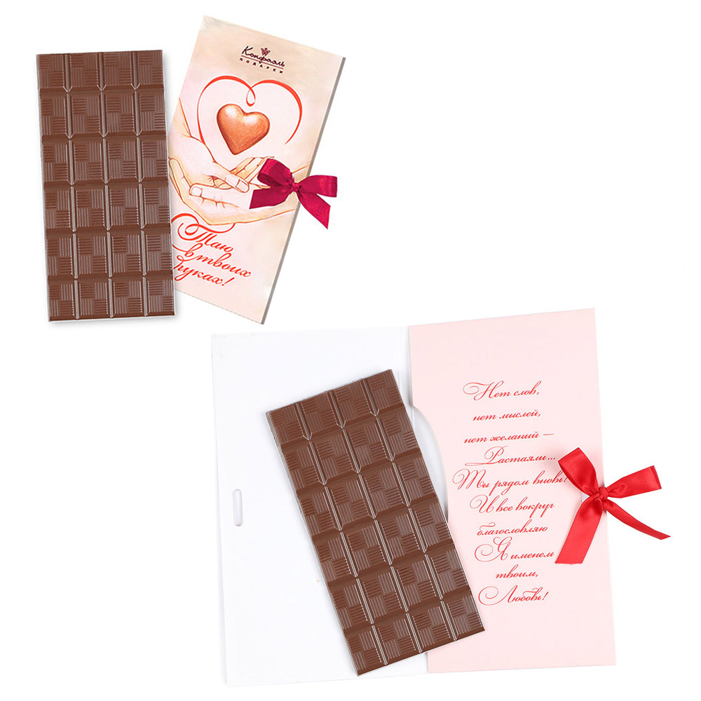 Отчаялись найти подарок ко Дню Святого Валентина, который лучше всяких слов расскажет о ваших чувствах? Шоколадная открытка - очень символичный подарок станет красивым сувениром для близкого человека и безмолвным признанием в своей страстной любви и глубокой привязанности к нему. Терпкий вкус превосходного шоколада от «Конфаэль», романтический ужин при свечах только для вас двоих сделает праздничный вечер незабываемым.