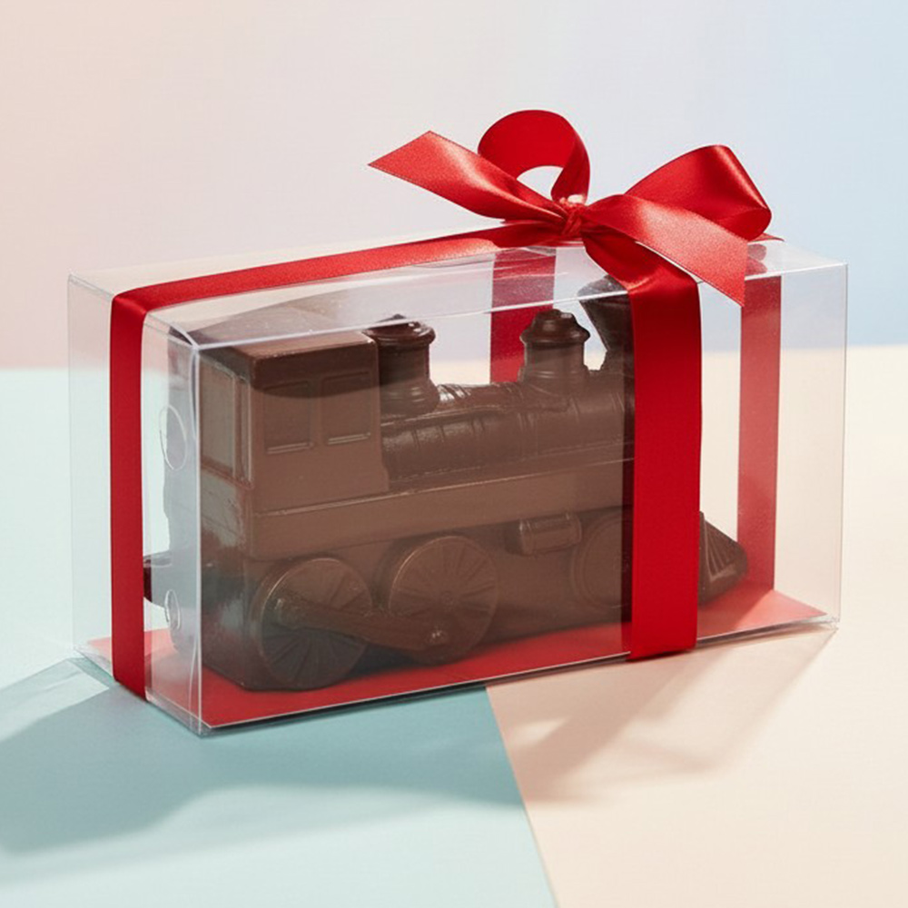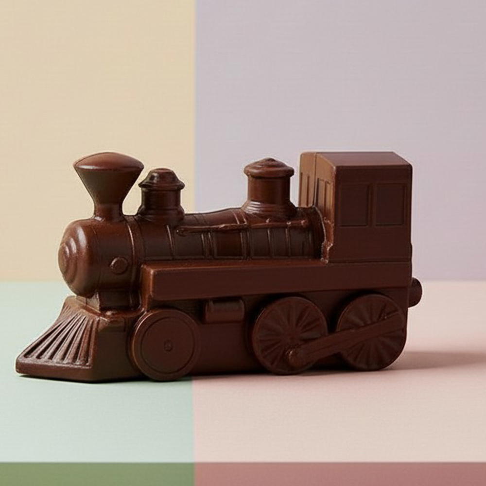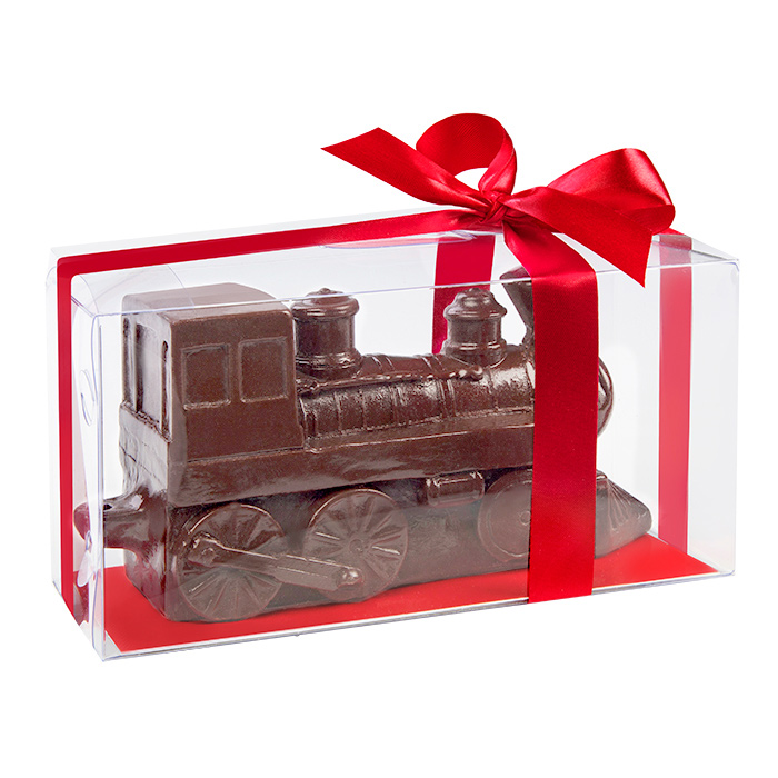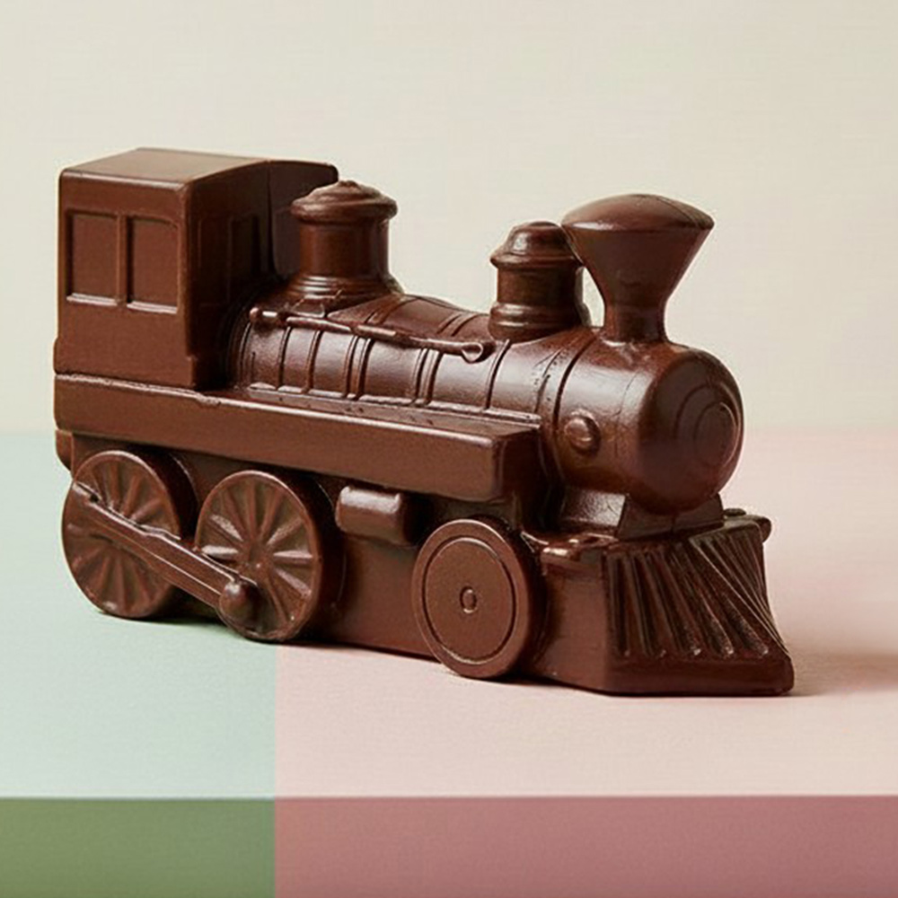 Для железнодорожников, а также всех, кому небезразлична железная дорога и подвижной состав, особенно старинный, мастера фабрики "Конфаэль" подготовили идеальный подарок: паровоз, выполненный из молочного шоколада.