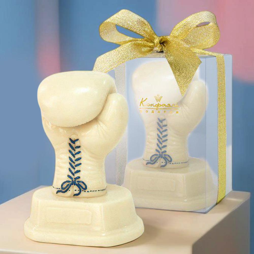 Только представьте удивление своего боксера, когда Вы преподнесете ему эту перчатку, выполненную из белого фигурного шоколада высшего качества!
