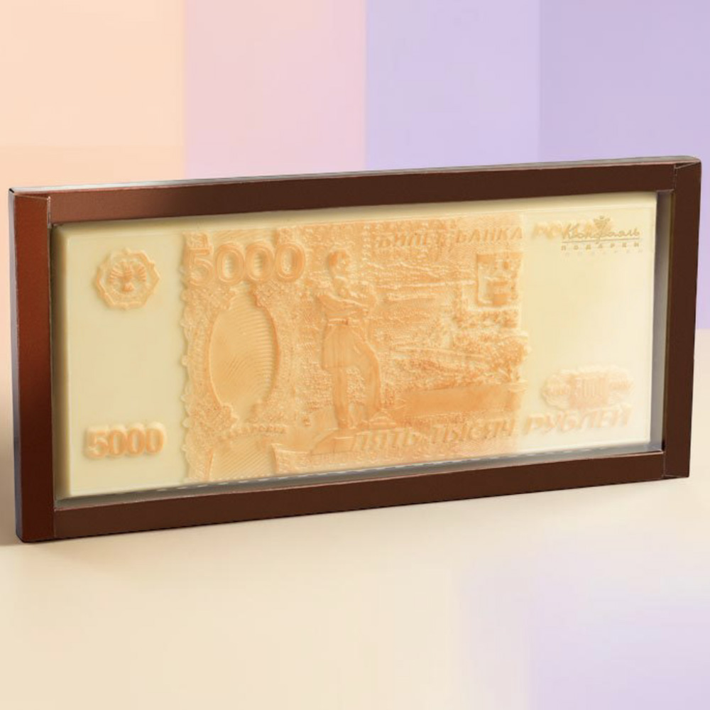 Шоколадный сувенир «Пять тысяч рублей» с натуральными добавками - благородный десерт, отличающийся нежным вкусом и презентабельным дизайном.