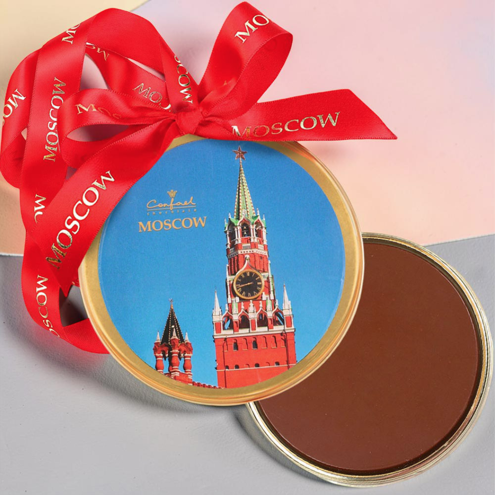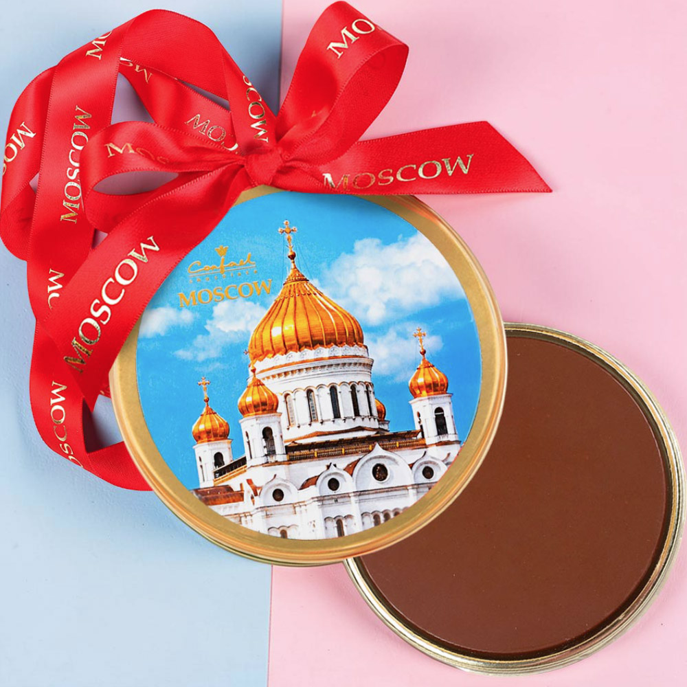 Сувенирная медаль «Собор Василия Блаженного» - желанный презент для ценителей молочного шоколада.