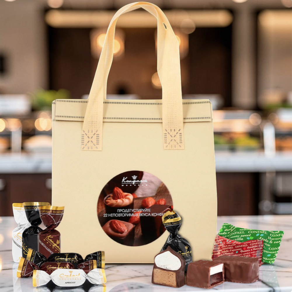 Представляем Вашему вниманию уникальную коллекцию конфет! Насладитесь роскошью вкусов, открыв нашу стильную сумку с сюрпризом внутри.