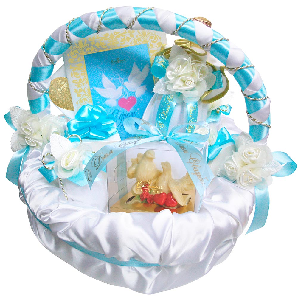 Удивите молодых на свадьбе прекрасным подарком - подарочной корзиной, наполненной изысканными конфетами!