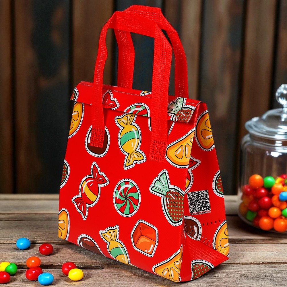 Термопакет красный "Конфеты" 21х20х10 см (застежка липучка многоразовая)