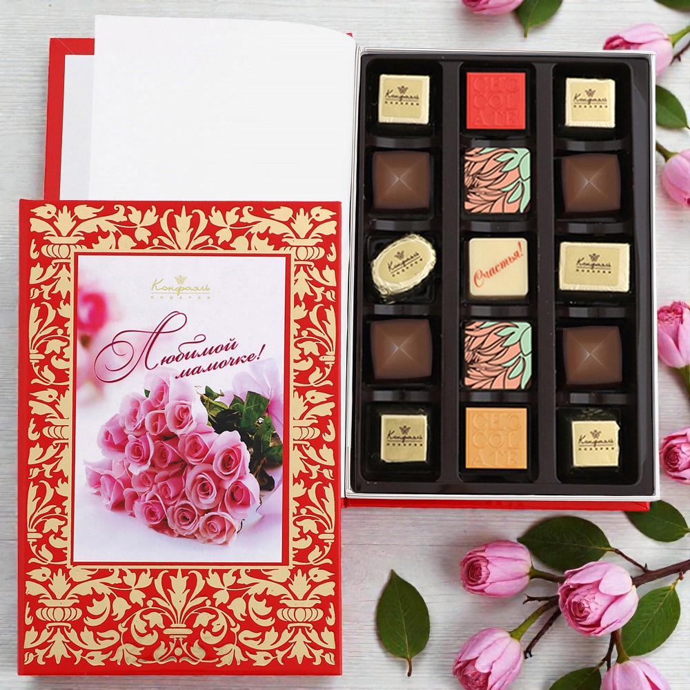 Мама - самое теплое и важное слово в нашей жизни. С ней связаны дражайшие воспоминания и чувства, которые просто так не передашь словами. “Конфаэль” предлагает особенный вариант сказать свое “Спасибо” - набор вкуснейших конфет из шоколада в декоративной упаковке. Стилизованный под книгу, этот подарок дополнит семейную летопись совместным чаепитием!