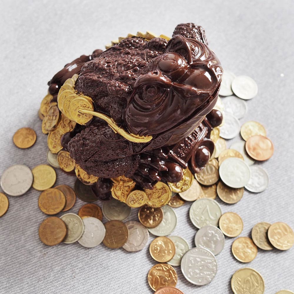 Шоколадная фигура «Жаба на деньгах» - точная копия знаменитого талисмана «Жаба Богатства» и выглядит как настоящая!