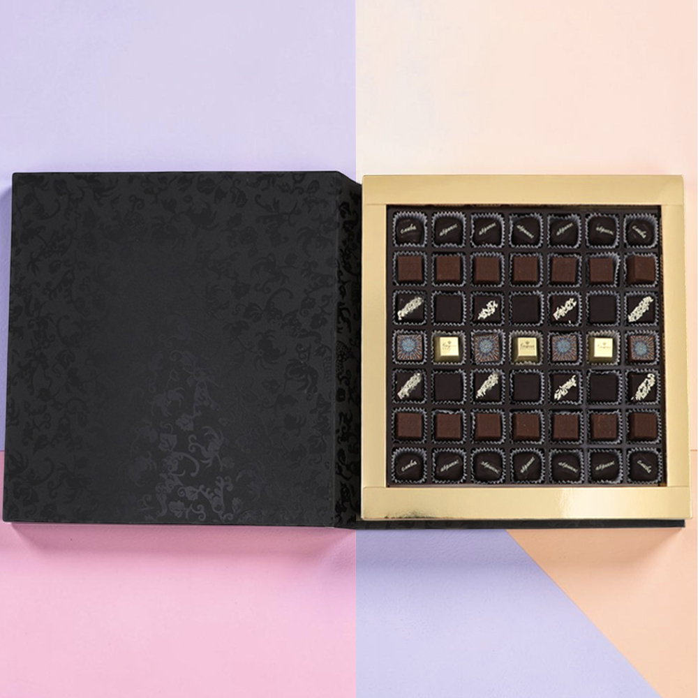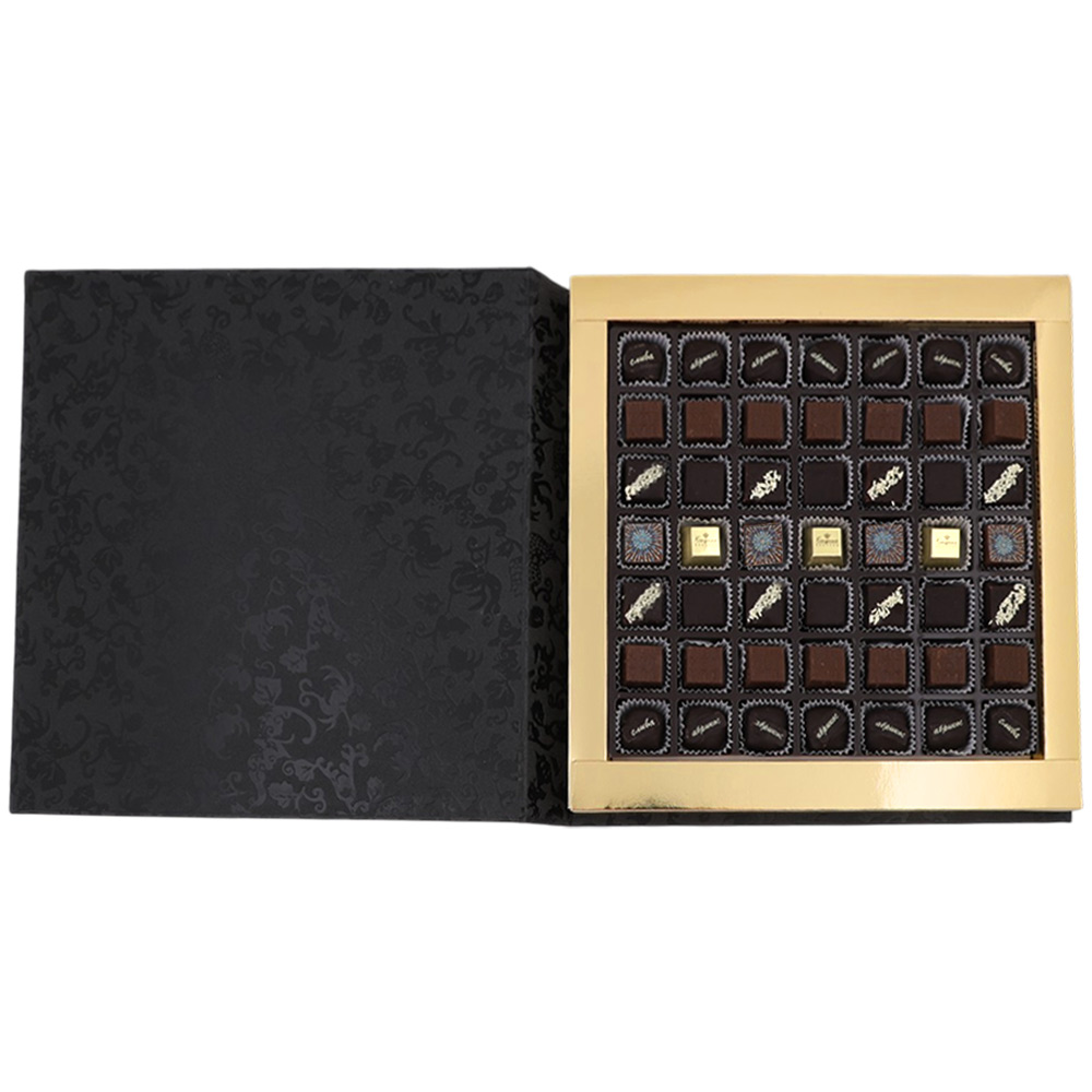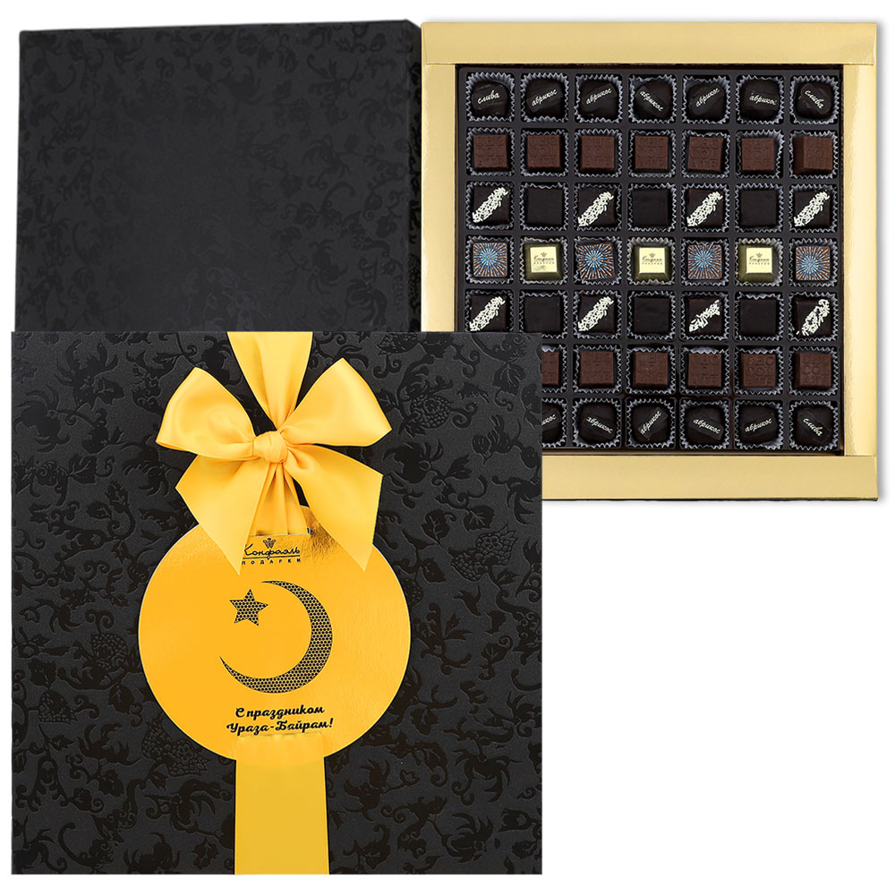 Шоколадные конфеты «Ассорти» со сливочными и шоколаданой начинками, с кремовой начинкой и декором ( "Шампанское и ананас"), конфеты «Суфле» в горьком шоколаде (ванильное),конфеты «Мягкий грильяж» в горьком шоколаде, конфеты «сухофрукты» в горьком шоколаде с декором(финик, слива, абрикос)