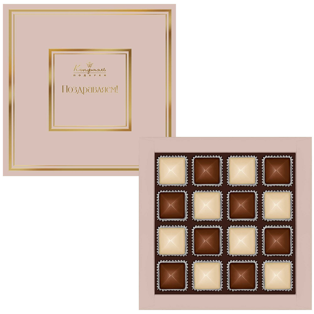 Состав: шоколадные массы – сахар, тертое какао, какао-порошок, масло какао, пахта сухая, сухое обезжиренное молоко, сухое цельное молоко, эмульгатор (лецитин соевый), соль, натуральная ваниль; начинки – сахар, патока, молоко сгущенное (молоко цельное, сахар (сахароза, лактоза)), сливки сгущенные с сахаром (сливки нормализованные, сахар (сахароза), лактоза), молоко сухое цельное, масла растительные рафинированные дезодорированные (подсолнечное, рапсовое, оливковое; масло сладко-сливочное, молоко сухое обезжиренное), сахарная пудра, жир специального назначения (масло ши, рапсовое масло, соевое масло), консервант (сорбиновая кислота), регулятор кислотности (лимонная кислота), эмульгаторы (лецитин соевый, Е471), ароматизаторы, пищевые красители «Сахарный колер». Продукция производится на предприятии, где используются арахис, кунжут, орехи, яичные и молочные продукты, злаки, содержащие глютен.