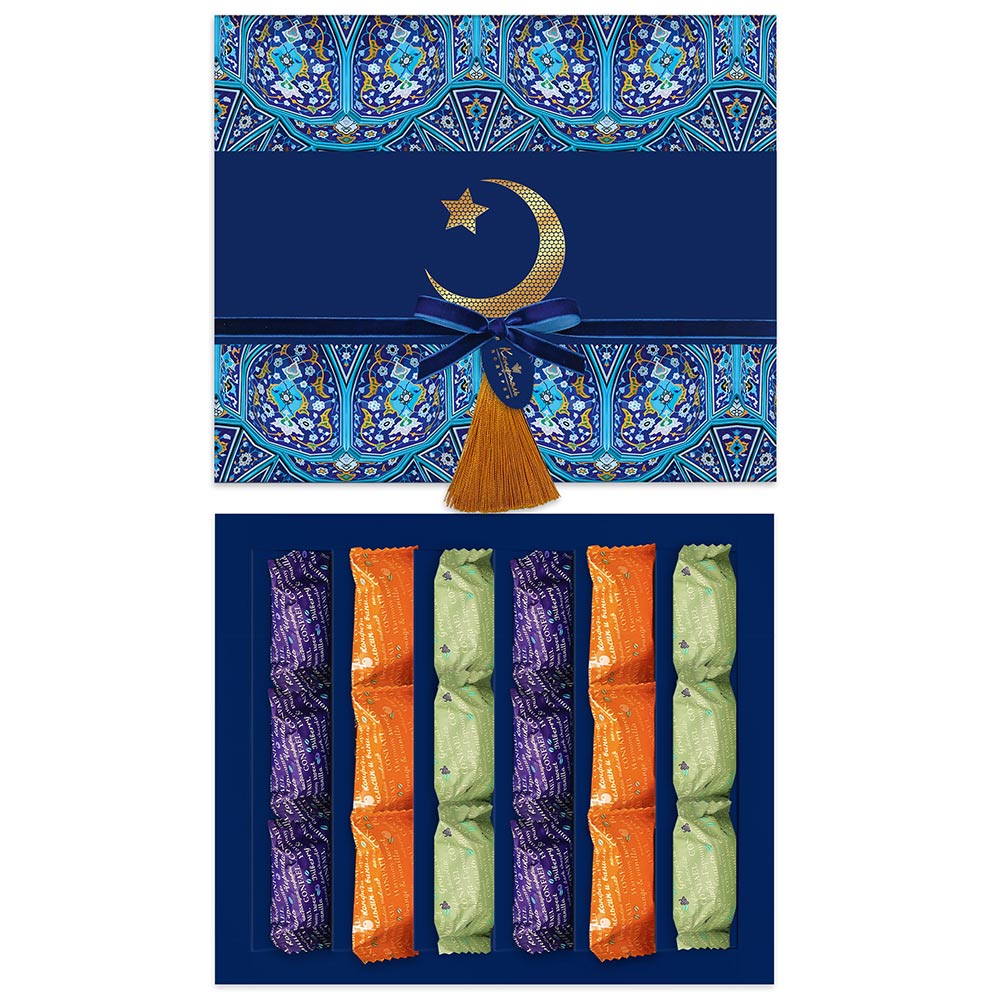 шоколадная масса – сахар, тертое какао, масло какао, какао-порошок, эмульгатор (лецитин соевый), натуральная ваниль; начинки – сахар, патока, молоко сгущенное (молоко цельное, сахар (сахароза, лактоза)), масло сладко-сливочное, яичный белок порошкообразный, натуральные концентрированные соки (виноградный, апельсиновый, черничный), желирующие агенты (агар, желатин говяжий), консервант (сорбиновая кислота), регулятор кислотности (лимонная кислота), эмульгаторы (Е471), ароматизаторы, натуральный экстракт ванили. Продукция производится на предприятии, где используются арахис, кунжут, орехи, яичные и молочные продукты, злаки, содержащие глютен.