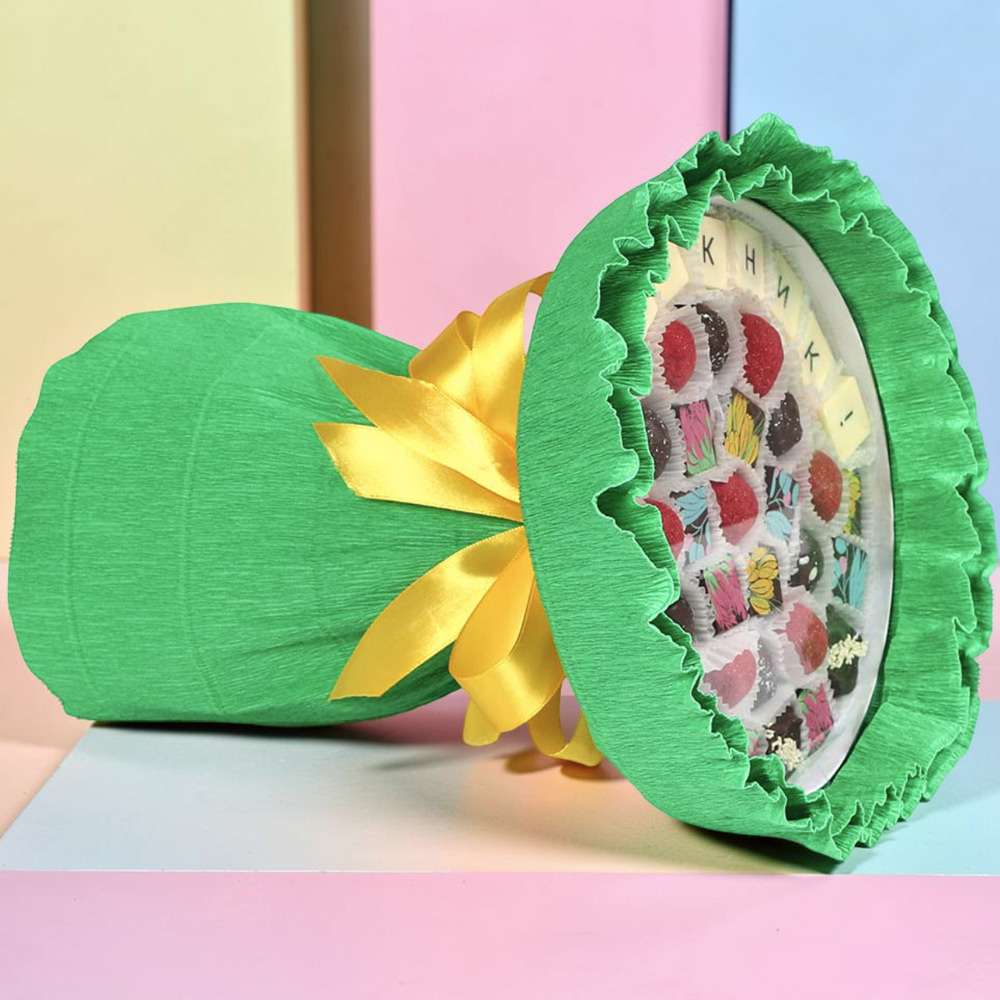 «Конфаэль» поможет вам, предложив особый набор из вкуснейших конфет, упакованных в виде охапки невиданных цветов.